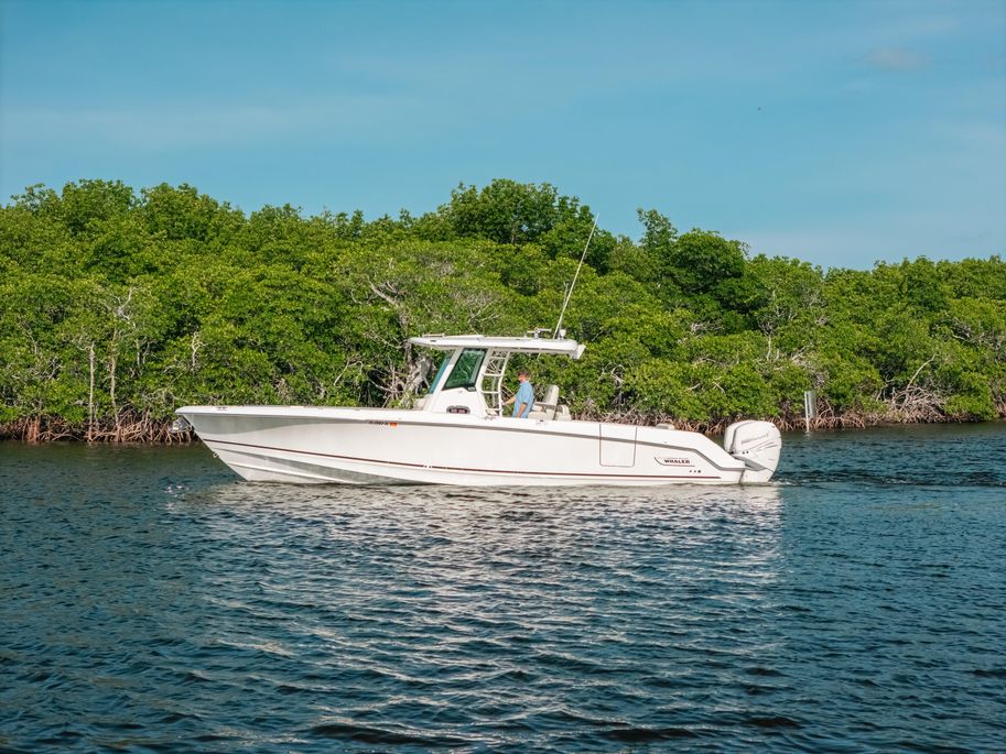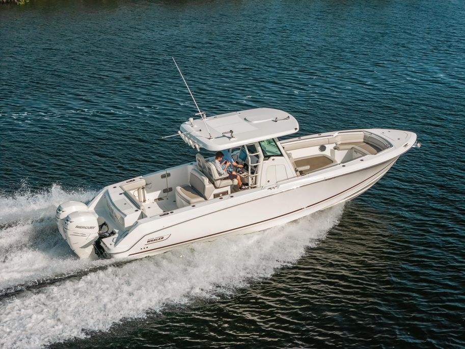 This 2019 Boston Whaler 330 Outrage is turn-key and ready for its new owner. Powered by Twin Mercury Verado 350hp with 563hrs. The 330 Outrage is an outstanding saltwater performer, built on a foundation of core confidence. Boston Whaler’s precision-engineered design delivers a smooth, dry, comfortable ride—the optimal balance of stability and softness. Handling is beautifully predictable with seamless control, giving you ease and confidence like you’ve never felt before. Fishing features and options galore, including numerous comfort-minded amenities for you and your guests, make the 330 perfect for entertaining and whatever offshore adventures you dream up.