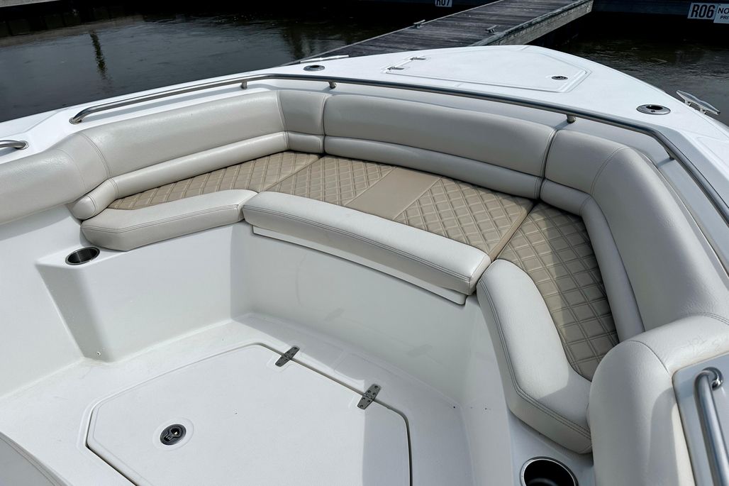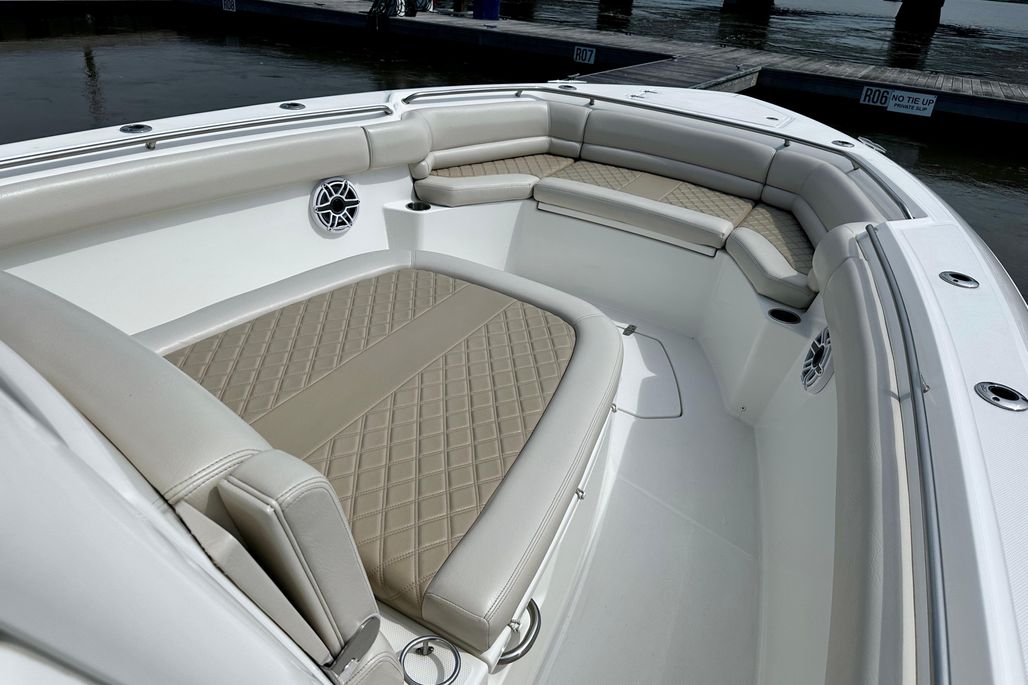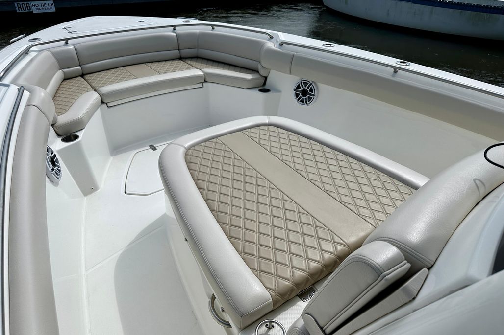 Turn heads and conquer the seas with this stunning 2019 Boston Whaler 330 Outrage, cloaked in a sleek Jadestone hull paint that radiates sophistication and style. Powered by twin Mercury 350 Verado outboards with Joystick Piloting and only 720 hours, this vessel delivers exhilarating performance and effortless control, making every docking a breeze and every journey a thrill. Meticulously maintained and loaded with premium options, this 33-foot center console is the ultimate blend of luxury, versatility, and rugged capability. Perfect for the discerning boater who demands performance, luxury, and unmatched style. Trailer is Available! Contact Zack Petrous today to schedule a viewing and experience this Jadestone gem for yourself!