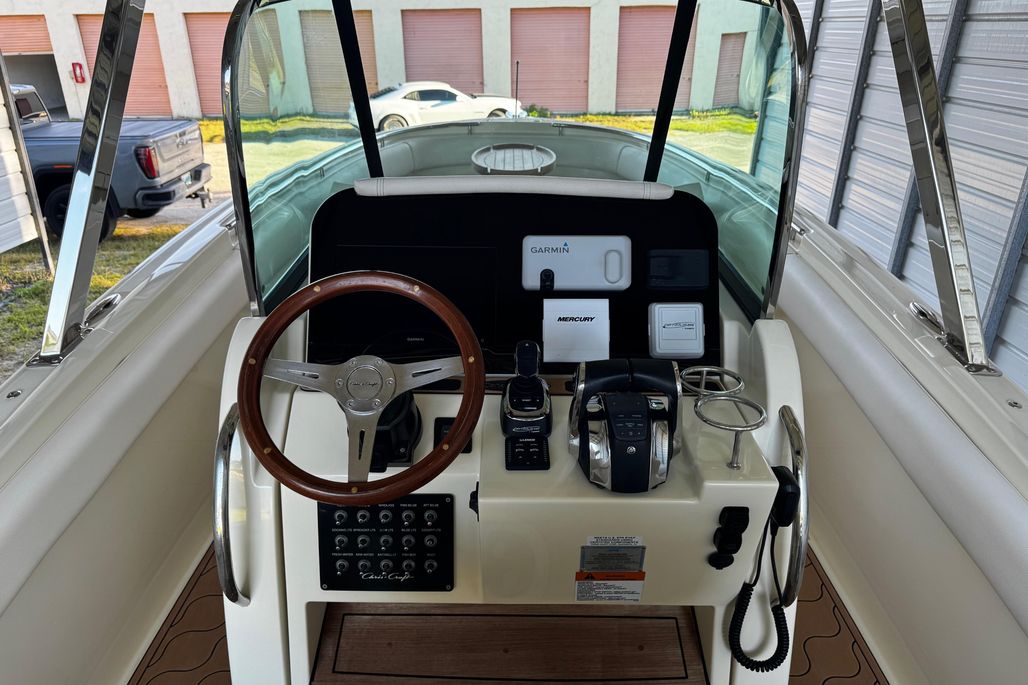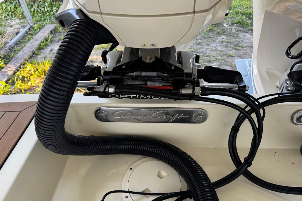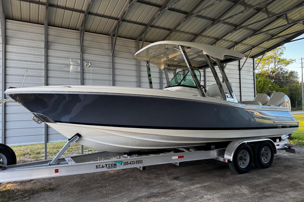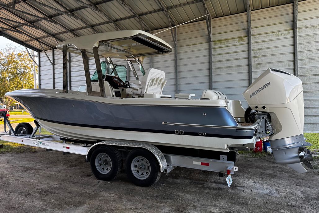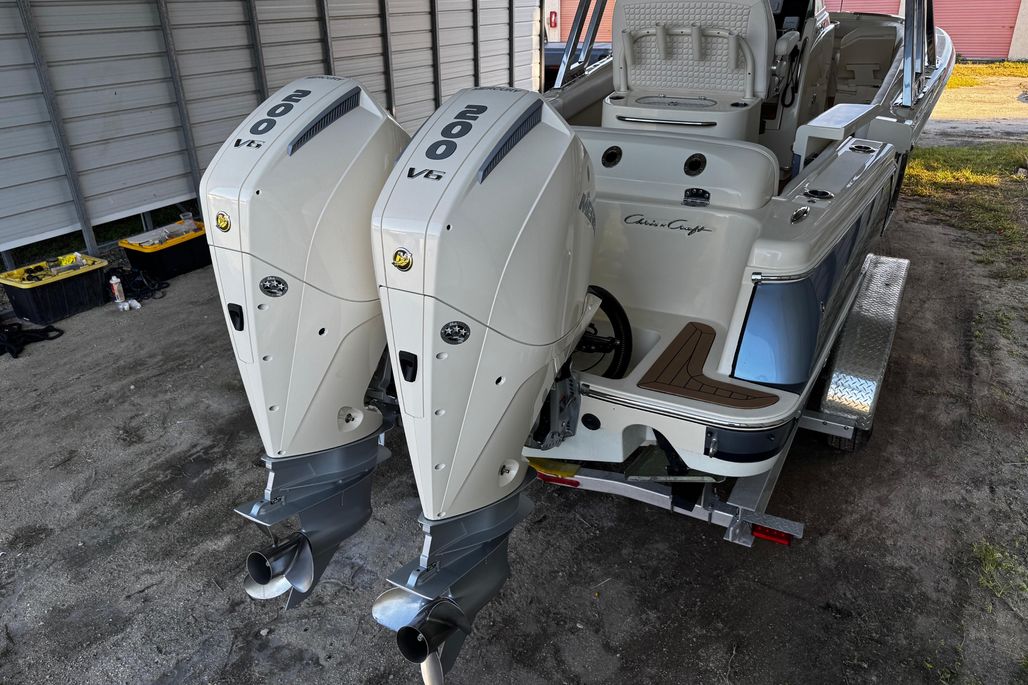 Introducing the 2019 Chris-Craft Catalina 26, a stunning center console boat that combines elegance with performance. Measuring an impressive 26.5 feet in overall length, this vessel features a robust fiberglass hull with a deep Vee shape, ensuring a smooth and stable ride on the water. Powered by twin Mercury Verado outboard engines, each delivering 200 horsepower, this boat promises exhilarating speed and agility. The stainless steel 4-blade propellers enhance performance, making it perfect for both leisurely cruises and adventurous outings. Equipped with modern amenities, including joystick control for effortless maneuvering and an electric windlass for convenient anchoring, the Catalina 26 is designed for ease of use. With a well-appointed head, this boat offers comfort for day trips and extended excursions alike. Experience the perfect blend of style and functionality with the Chris-Craft Catalina 26, a true gem for boating enthusiasts.
