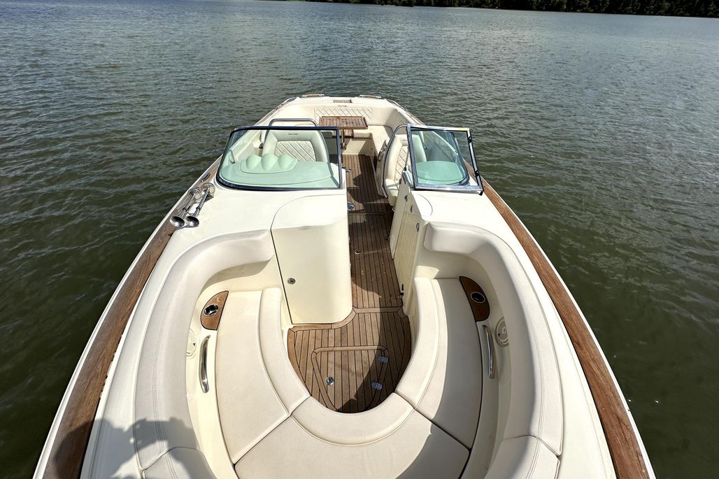 Exuding the signature Chris-Craft heritage, the Launch 30 features an abundance of beautifully finished teak decking, premium upholstery, and stainless-steel accents. Power is delivered by twin Mercury engines, offering exhilarating performance and confident handling in a variety of conditions.