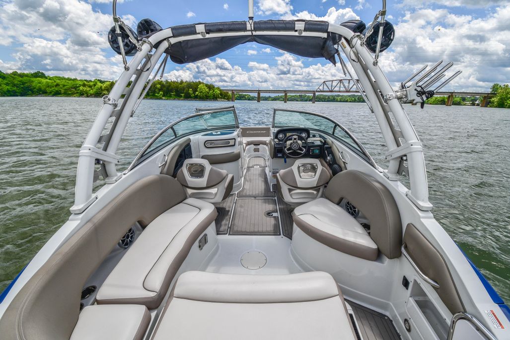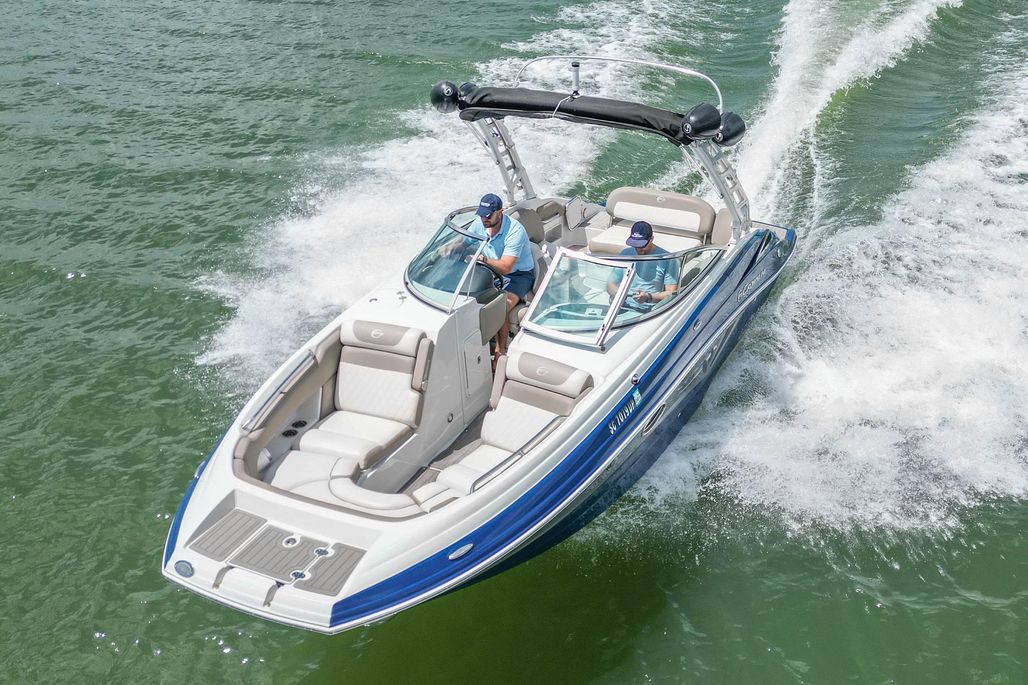 This wonderful 2019 Crownline E255 Surf is perfect for family cruising or the serious wake surf enthusiast. The vessel has always been used in freshwater and features an innovative quick winterization system from Volvo Penta on its 300 HP V8.