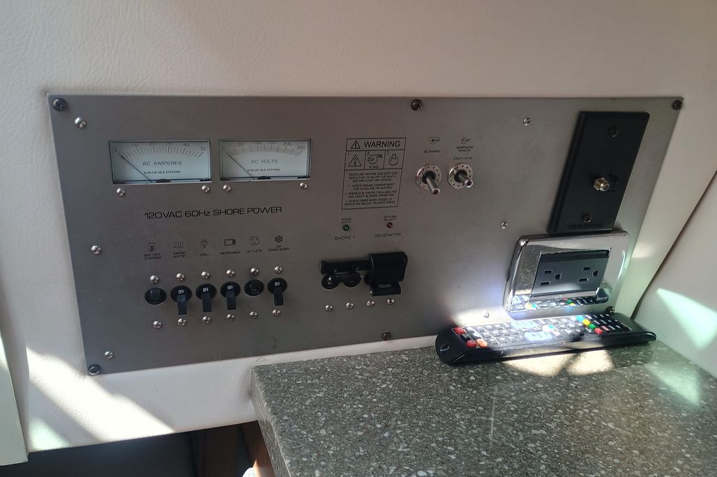 This 2019 Four Winns H350 OB is the large bowrider you have been looking for! She offers so much versatility as a luxurious family day boat and is perfect for weekend getaways. This vessel is absolutely loaded with all the options and provides ample seating for up to 16 guests. She is powered by twin 350 Mercury Verados( 583 hours) with Joystick control, that move her comfortably through the water at speeds of up to 50 mph. A few of the many amenities include: 5 Kw Generator , an alfresco galley(electric grill, double sink wet bar and refrigerator), large electronically multi-way powered aft sun pad/ bench seat, and a large A/C controlled interior space that includes sleeping accommodations with large windows, a full head, smart TV and microwave. Also has dual 9'' Simrad EVO GPS/ fish finder screens and Simrad VHF radio. Priced to sell at $229,900. Boat is located in Riviera Beach. Contact Joe Petersen.