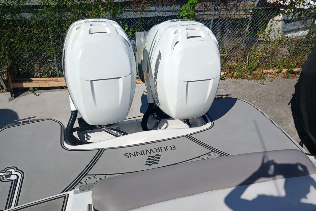 Now available a 2019 H350 OB Four Winns with twin 350 Mercury 4-stroke outboards. A fantastic combo bowrider/ cabin family cruising and overnight boat. There are 583 hours on these great running Mercury outboards.