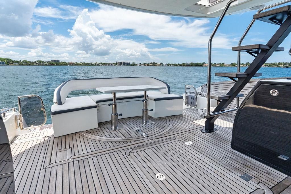 This well-equipped 2019 Galeon 500 Fly combines performance, comfort, and innovative design. Powered by twin Volvo Penta D11 engines, she delivers efficient cruising with plenty of strength when you need it. One of Galeon’s most recognizable features, the Beach Mode balconies, fold out to dramatically expand deck space and create a seamless connection to the water.