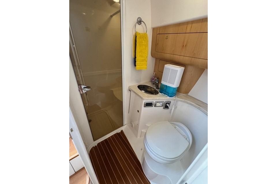 Onboard, the layout is exceptionally versatile. The helm features seating for two with excellent visibility, while the expansive cockpit and wraparound seating create a great space for entertaining family and friends. Below, the cabin offers comfortable accommodations for up to four overnight guests with an aft cabin and premium finishes throughout. With serious fishing features, refined cruising comfort, and all-around versatility, SAGA is designed for the way people actually use their boats-she does it all and does it well.