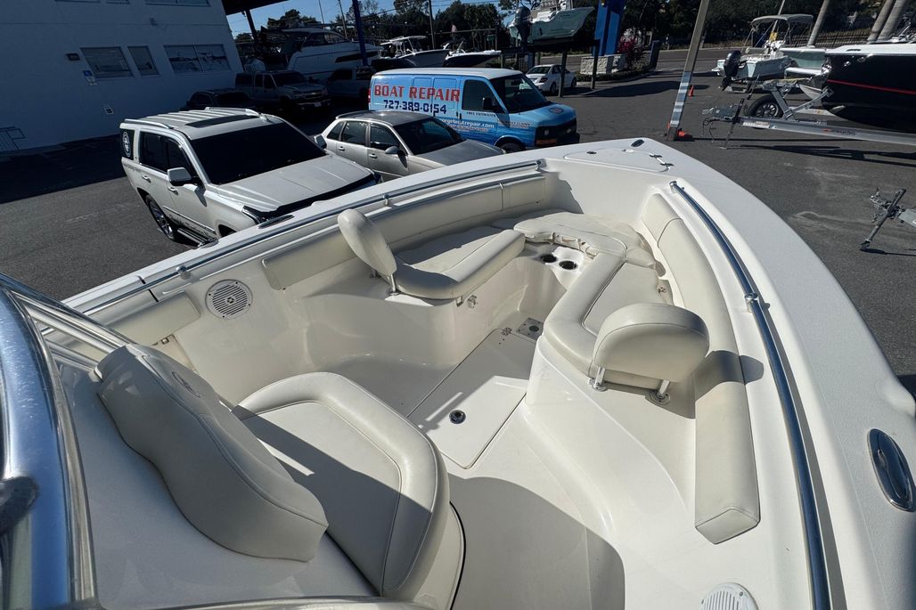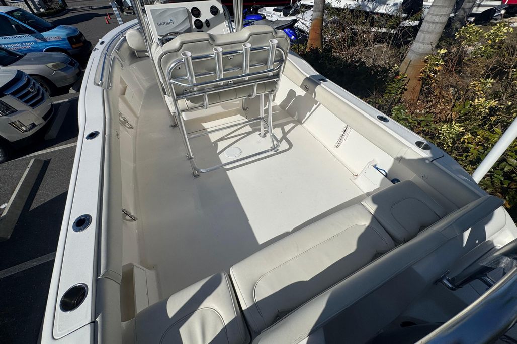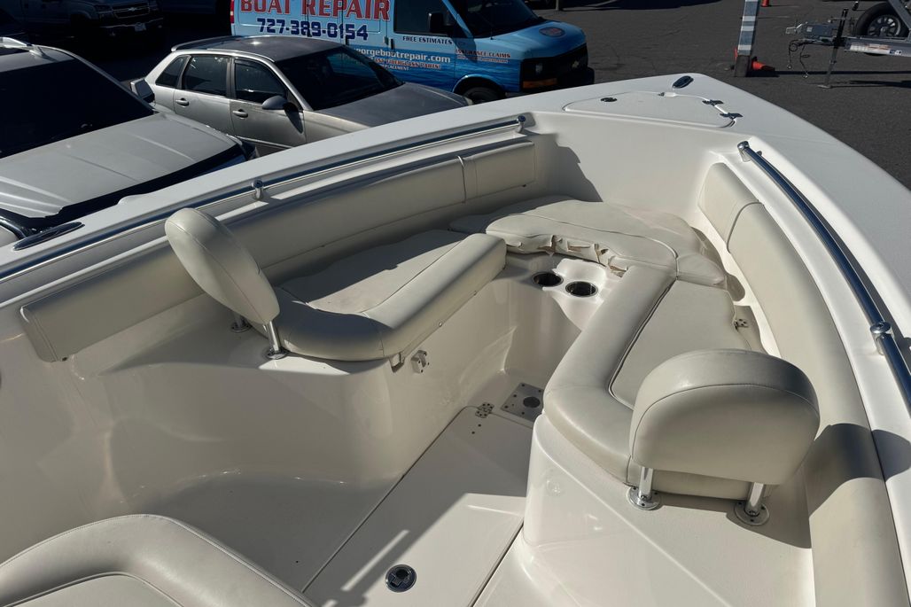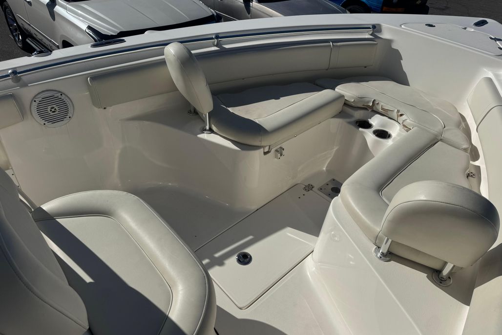 The 239FS offers the largest cockpit in its class, and loaded with features for both family comfort and serious fishing. Enjoy the comfort of the full width bench seat in the rear and the optional front facing seating in the bow for relaxing day on the water with the family and friends, or hit the blue water safe and secure in a very capable long range offshore fishing platform. Fishing features include the ever present live well, rod storage racks, trolling rod holders, and even an insulated, macerated under floor fish box up front. The 239FS is ready for whatever water sports your family enjoys.