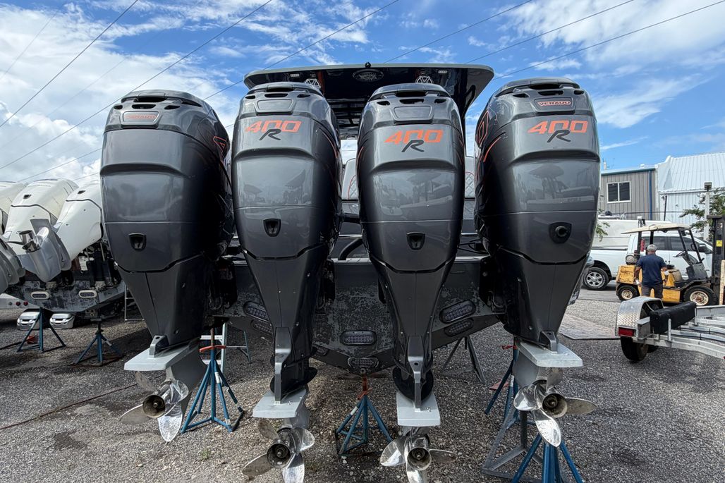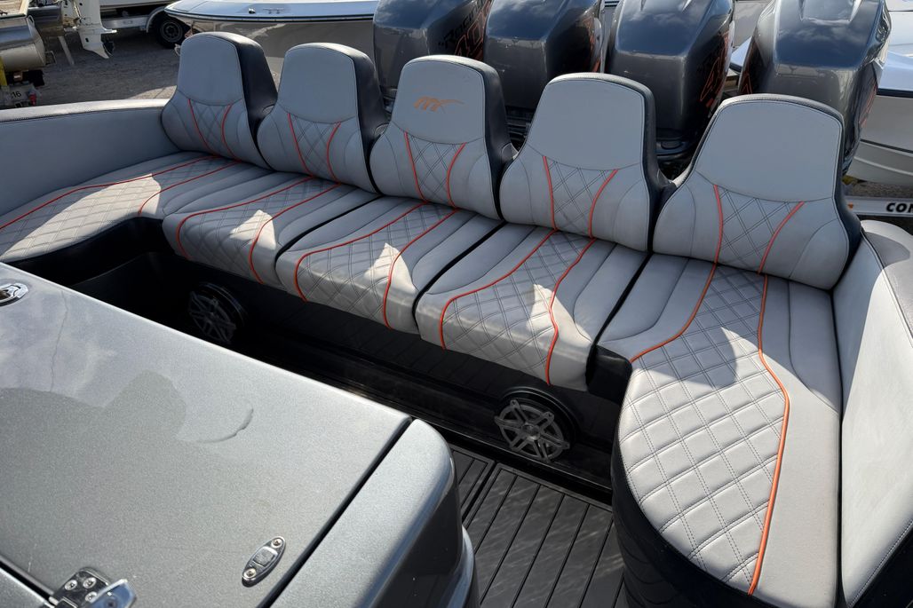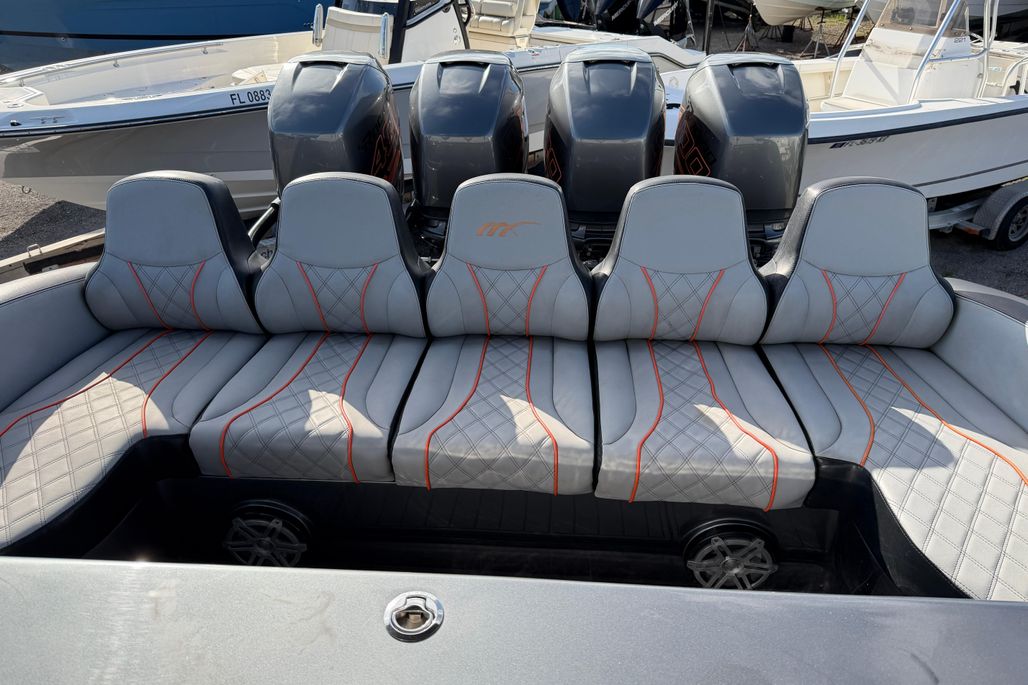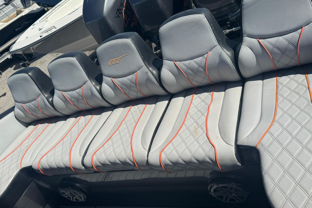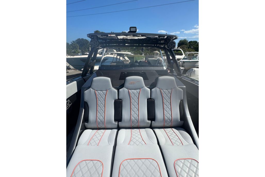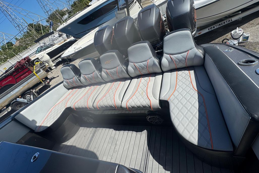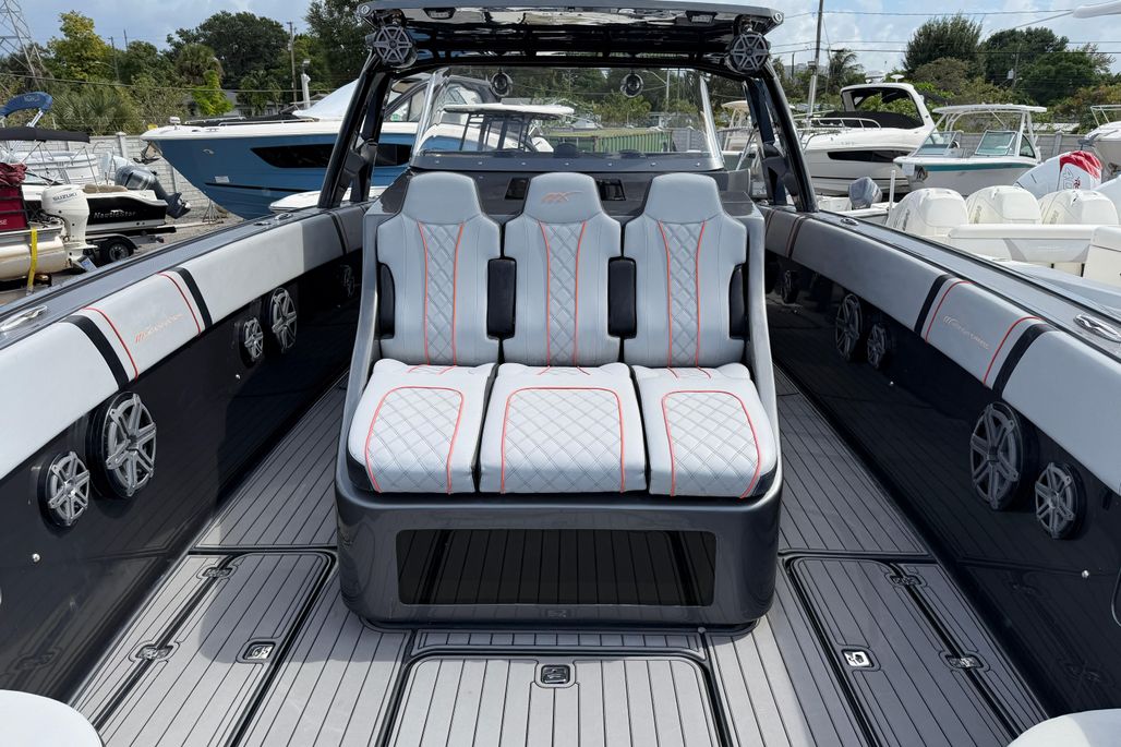 - Built for entertaining: An aft summer kitchen with a sink, built-in refrigerators, and counter space makes entertaining easy. A premium JL audio sound system with numerous speakers and subwoofers ensures a party atmosphere wherever you go.