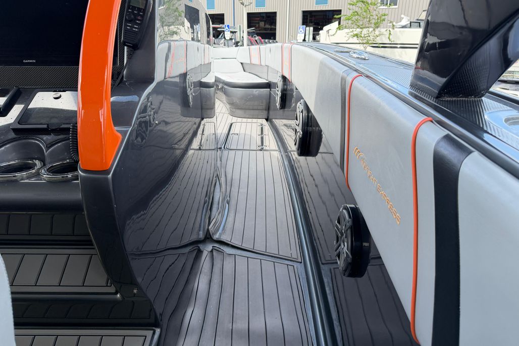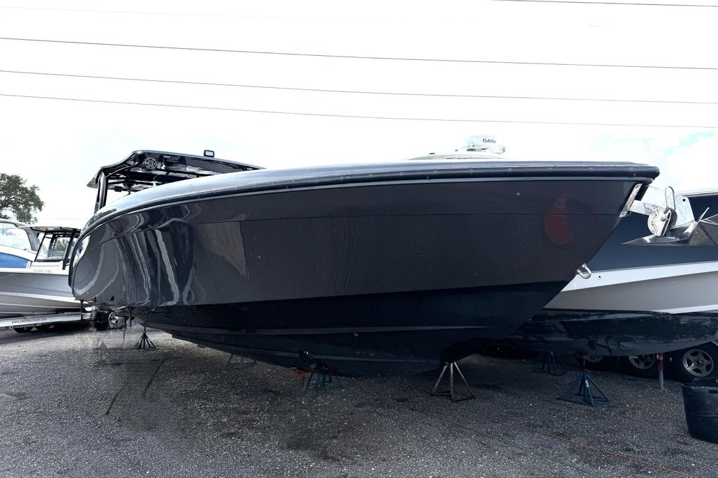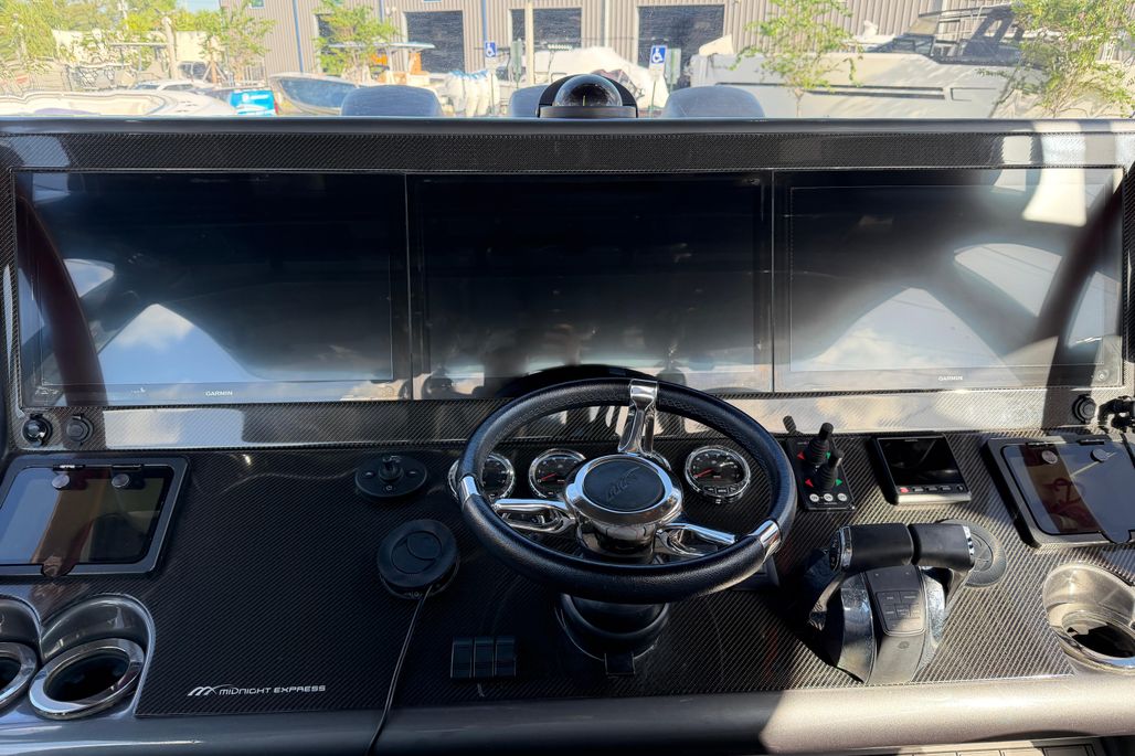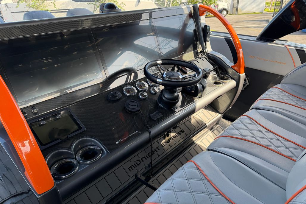 The Midnight Express 43 Open, an exceptional blend of exhilarating speed, superior handling, and customized luxury. With its high-performance, twin-stepped hull and expansive 12’6″ beam, this boat delivers an incredibly dry ride, whether you are cruising with a large group or enjoying a thrill ride on your own. Built with high-tech materials and weight-saving construction, this center console is a true game-changer.