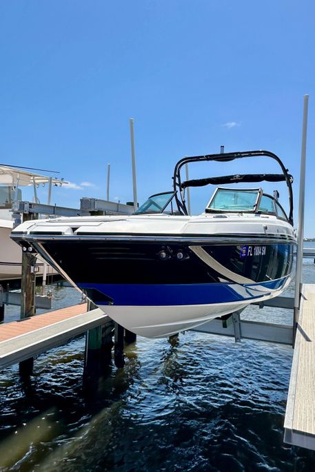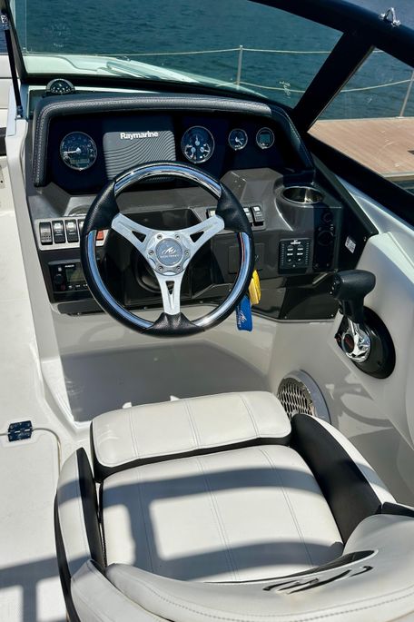 Original owner, lift kept and always fully covered, you'd have a hard time thinking this M45 wasn't brand new. Only 82 hours on her great performing V-8 250 Mercury Verado. A very versatile boat, from her bow seating to the open cockpit with loads storage, this particular M45 is loaded with options, dual power poles, dual batteries, trim tabs with indicators, Wakeboard/ski arch with bimini top, enclosed head with pump out, a full electronics package, including the premium stereo system. A hit with family and guests, from the sand bar, to the ultimate tow boat and cocktail cruiser, Monterey has packed a lot into this 24' boat.