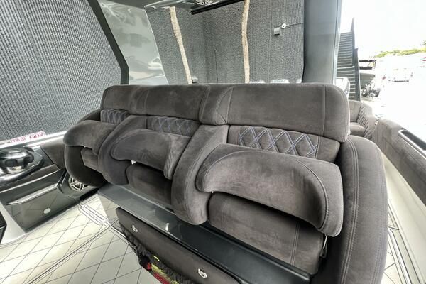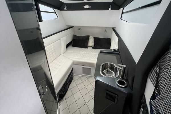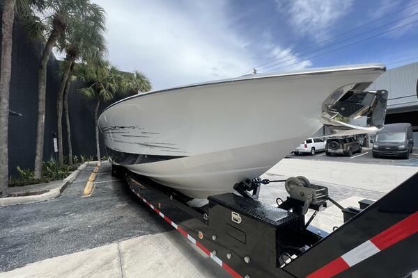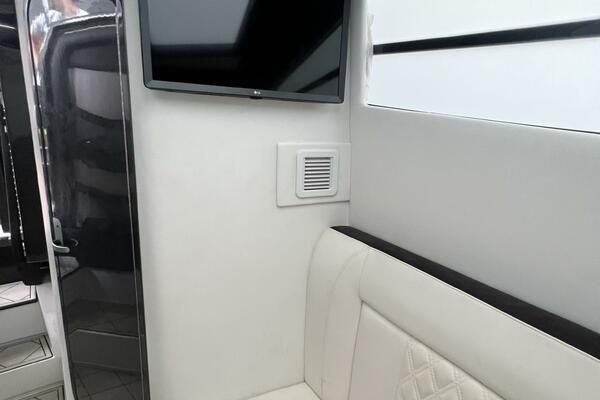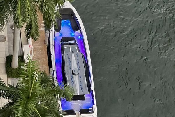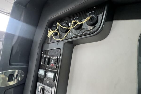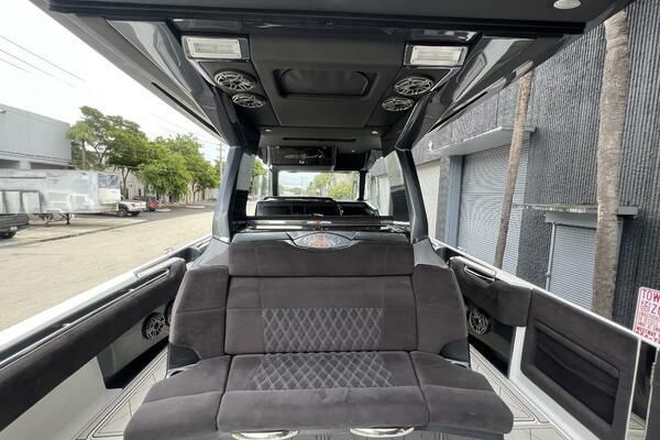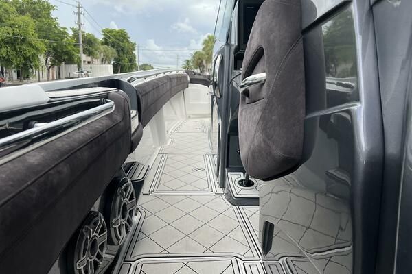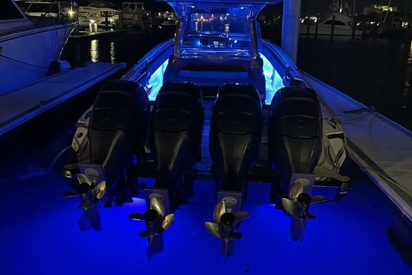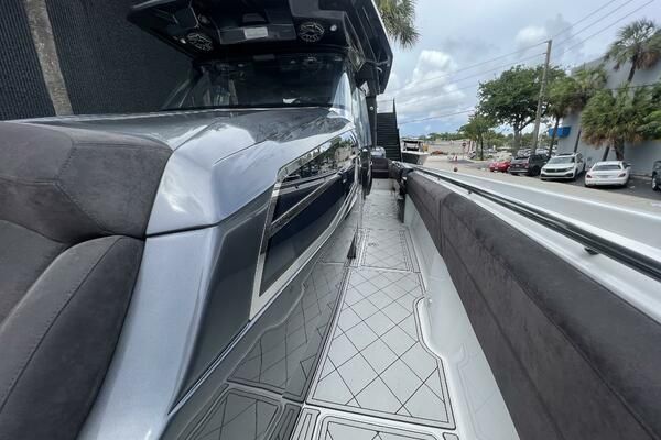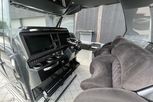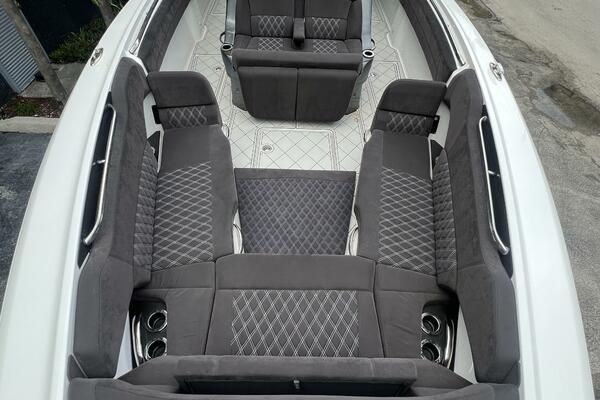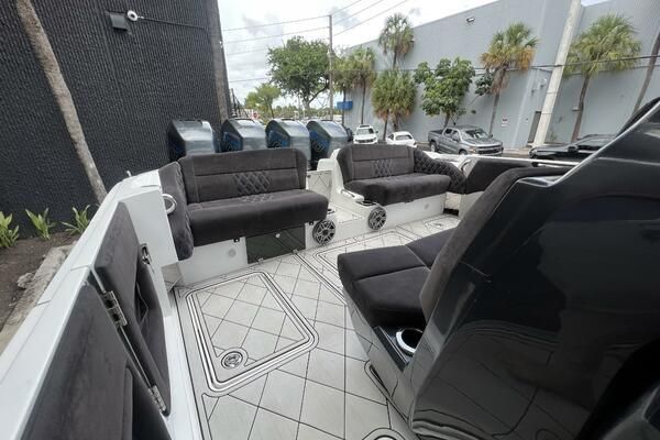 Expanse Lounge seating in the bow and stern , huge deck spaces, upgraded materials in excellent condition. Full wet bar, in deck stowage, high end sound system entertainment center , cold-plate cooler to insulated fish boxes. Amenities, including a full shower, enclosed head, cabin and helm air conditioner, berth, alcantara upholstery and custom design hull paint.