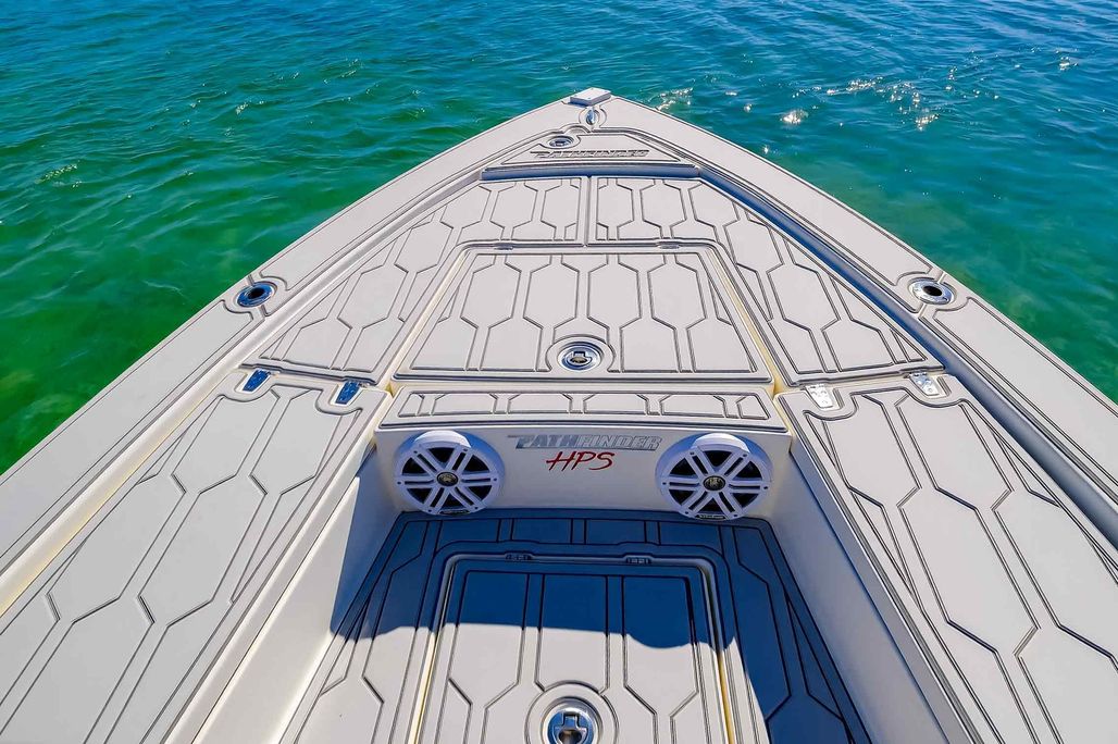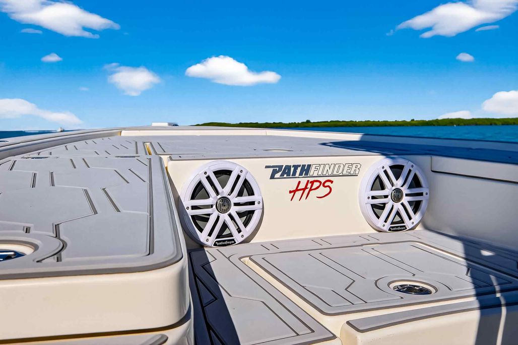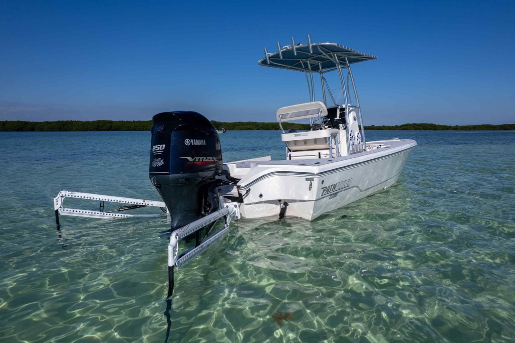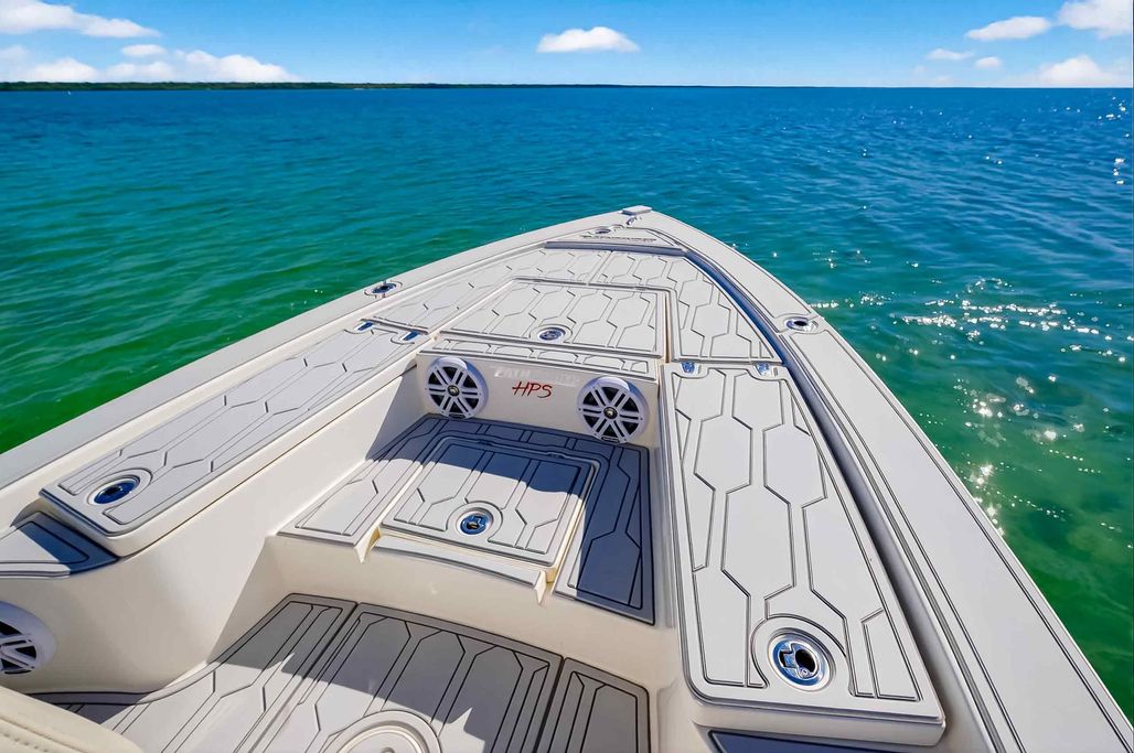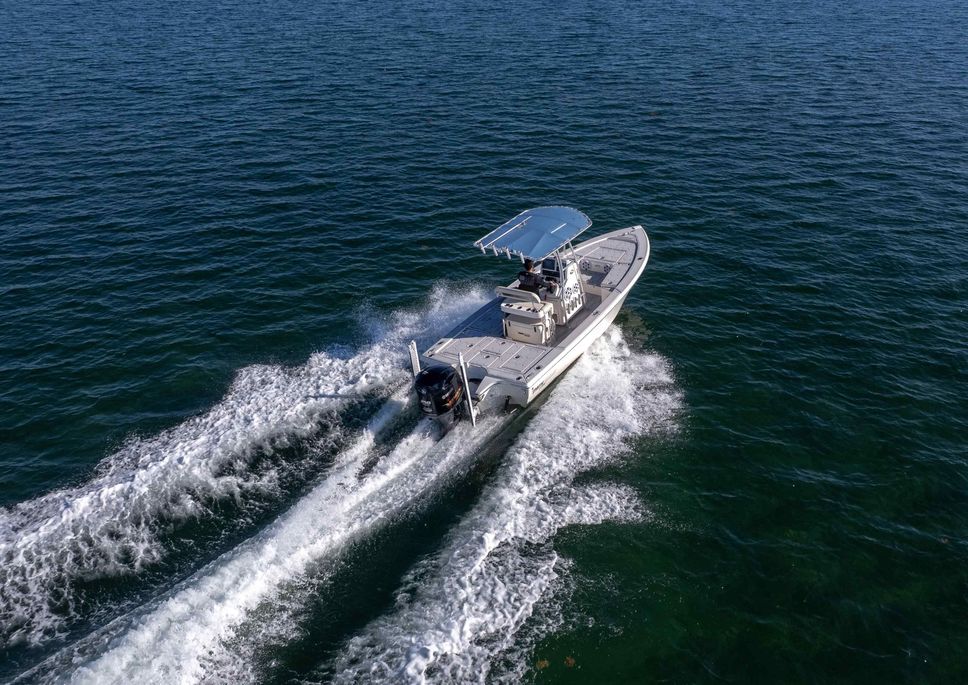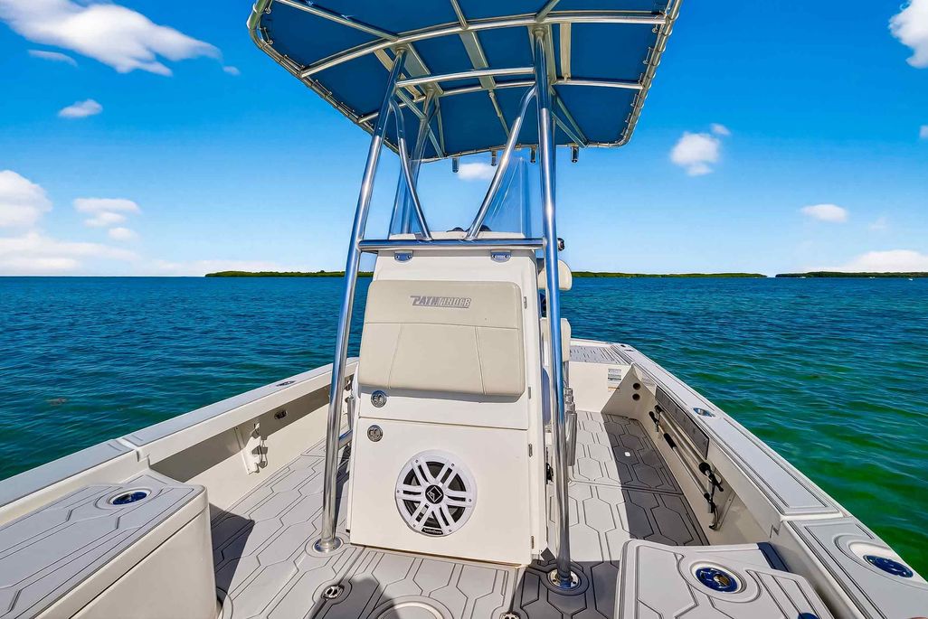 The first bay boat built specifically around Yamaha’s Super High Output (SHO) four-stroke technology, the 2300 HPS (High Performance Step) redefines top-end running performance in a true bay boat platform. A stepped hull and bustle transom with standard 6″ jackplate optimize speed and running efficiency. Add to that more cockpit and deck space, walk around gunwales and increased storage for everything from castnets to 9.5′ fly rods. The result is a jaw-dropping rocket with a light-tackle payload capacity that will clear out your tackle room.