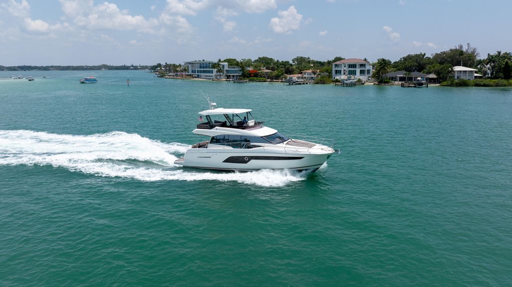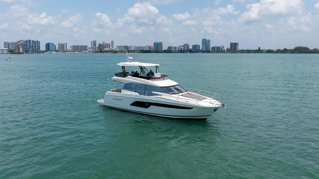 This 2019 Prestige 520 Fly has been maintained and serviced routinely by the same service center since new. "Waldemere" is located at Marina Jacks, and is on a full-time yacht management program - never missing a coat of wax. She is fully serviced, has fresh bottom paint, and is ready for her next owner. Designed for effortless cruising, it features twin Volvo Penta IPS 600 engines that provide smooth handling, fuel efficiency, and joystick control for easy docking. Its spacious layout includes a full-beam master suite, an open-concept salon with panoramic windows, and an expansive flybridge, making it perfect for both entertaining and extended voyages.