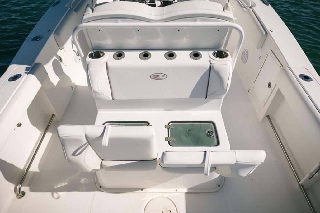 - Mezzanine Leaning Post W/ 40 Gallon Split Livewell & Captains Chairs