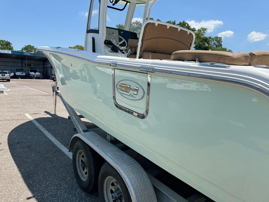 Current on Service and clean, clean vessel. This 2019 Sea Hunt Ultra 255 SE is about as versatile as they come. Ready to fish, sandbar hop or quiet sunset cruises. Sea Foam Green color w/ Matching undersided Fiberglas T-Top. White Powdercoated T-Top Frame & Distressed Tan interior.