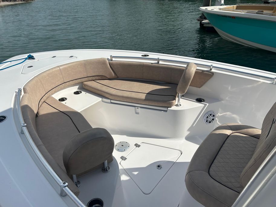 The Heritage 241 has additional cockpit space, a larger console with inner liner, upgraded leaning post, freshwater washdown and a standard hard-top that includes lights, 4 speakers, misters & storage. With a 300HP Yamaha engine - 275 hours.