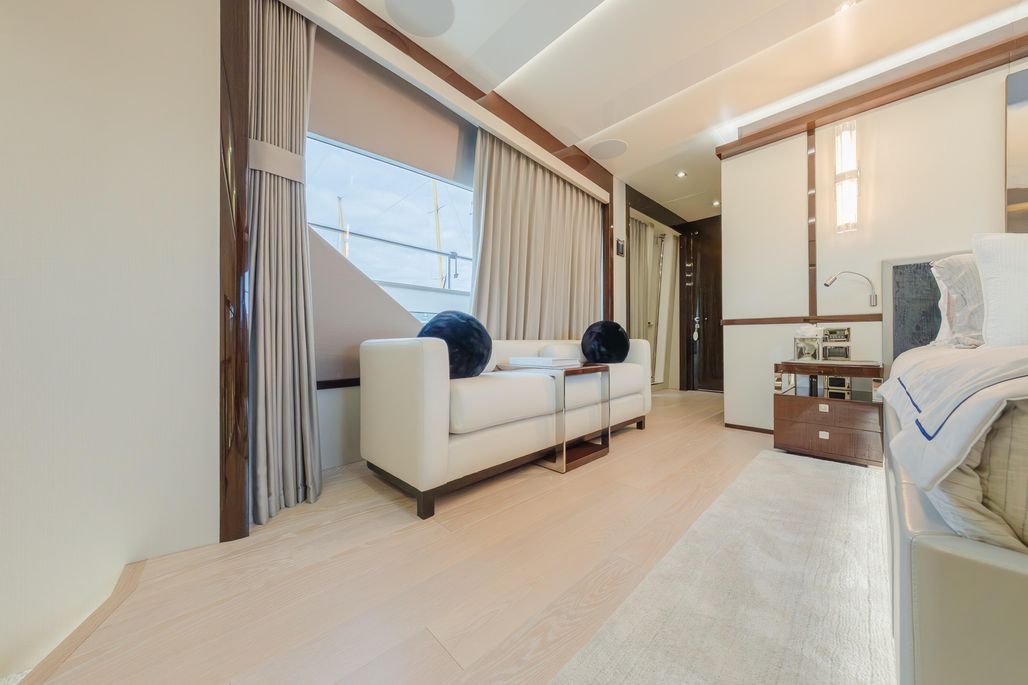 REUNION is a stunning example of the 2019 Sunseeker 95 Yacht, offering a perfect fusion of luxurious interior design and expansive exterior spaces. With thoughtful craftsmanship and modern amenities, this yacht distinguishes itself as a top-tier vessel in its class. The five-stateroom layout, including the rare feature of an on-deck master suite, delivers an exceptional blend of comfort, privacy, and convenience, an offering seldom found on yachts of this size. Every cabin is designed to meet the highest standards, ensuring an experience of refined elegance for owners and guests alike.