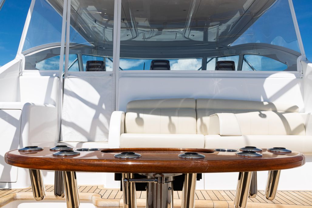 The Costa Clear enclosure and air conditioning keep you cool and comfortable on the spacious command deck, which includes three adjustable pedestal seats.