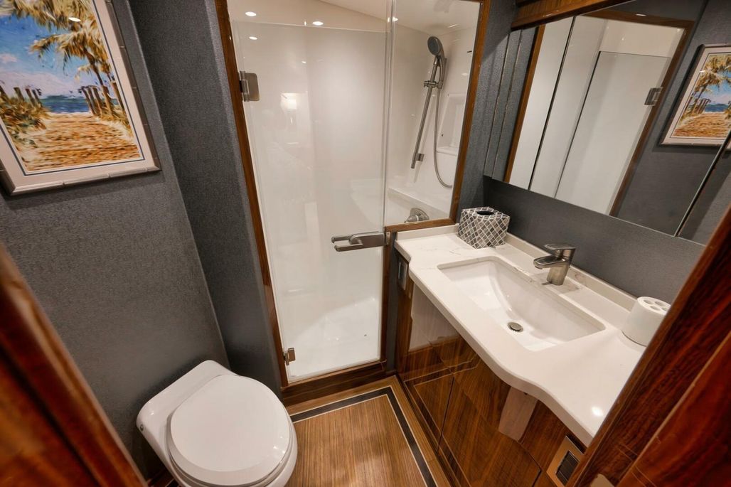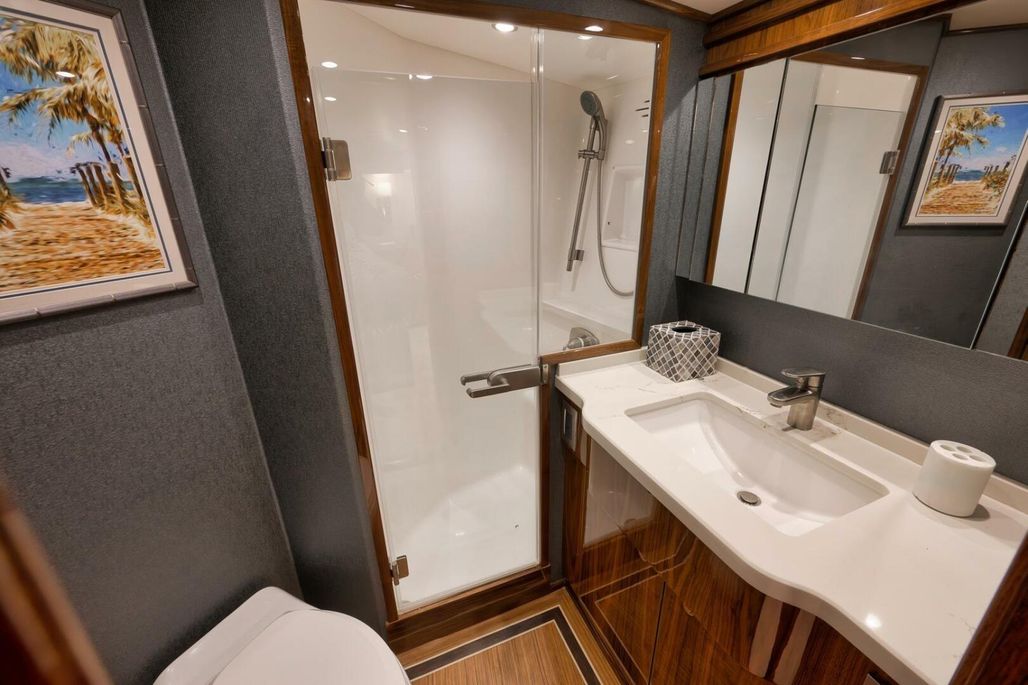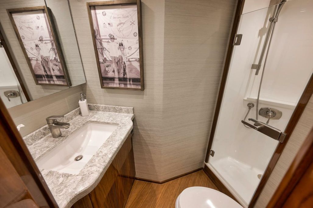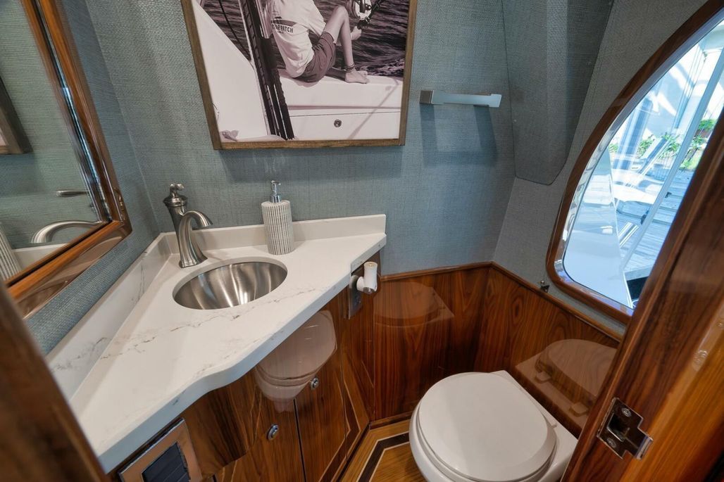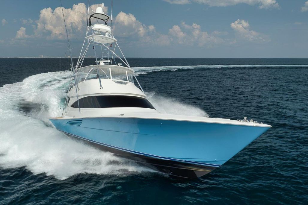 With her eye-catching Bahama Blue Hull, she is fully equipped with tournament-rigged gear, including a second Seakeeper, which further enhances the already impressive roll reduction. She is ready to travel or hit the tournament circuit with services up to date and the balance of engine warranty in place until October 30, 2026, or 4495 hours, whichever comes first.