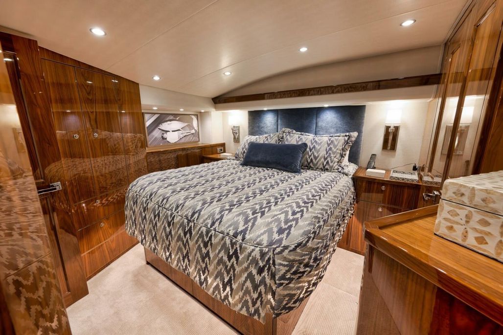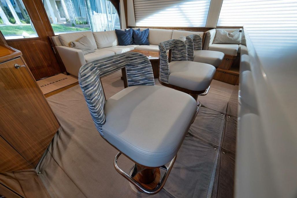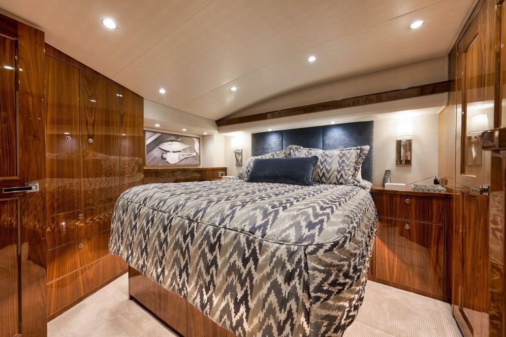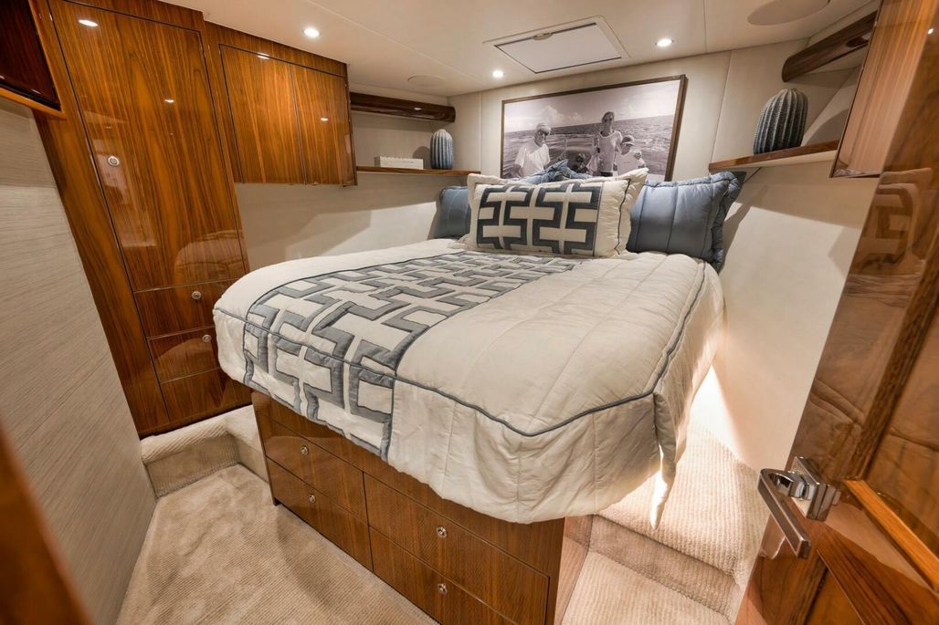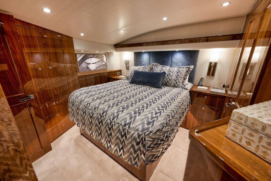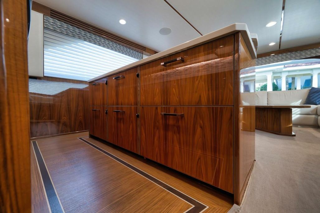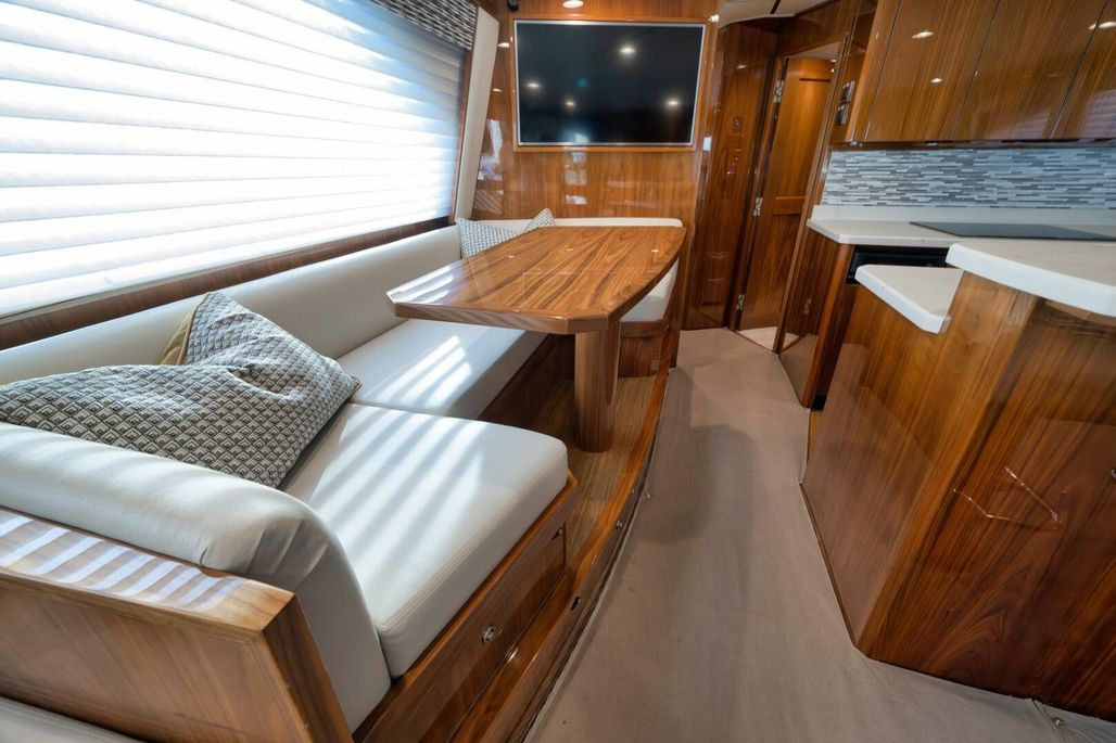 2019 68' Viking Convertible "Galati Yacht Sales Incoming Trade" for sale- She encompasses a truly exceptional build, dialed in to the highest degree. Very well maintained from both an aesthetic and mechanical perspective. The 68 offers a spectacular 4-stateroom, 4.5-head layout, coupled with a smooth, quiet, and dry ride. Propelled with proven MTU 12V 2000 M96Ls, She offers a comfortable 34-knot cruise and a 40-knot barrier top end. Other than the ’68’s stellar performance, the true attraction of this vessel lies within its spacious salon with raised dinette and open galley island arrangement. View the pop-up TV on a mechanical lift to starboard from any vantage point, or the second additional TV mounted forward above the dinette. The large and spacious walk-in pantry forward of the galley is a game-changer and sure to please those looking for convenient access to organized storage space. Just forward down the companionway from the pantry, you will find easy access to the generous crew’s quarters with a second Octoplex control and access to the engine room.
