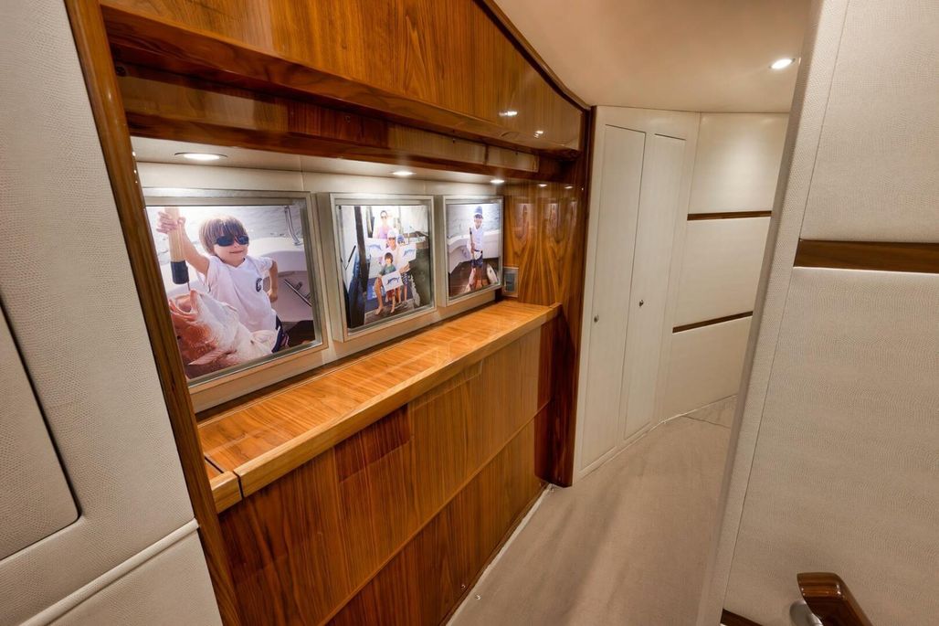 Take advantage of this extensive build, complete with hours of painstaking detail! The first-class tuna tube set-up includes a full-depth live well, on-deck livewell feeds, and electric reel outlets. Her Release Marine trillion helm and fighting chair package, omni sonar, upgraded AC vents in mezzanine armrests set this boat apart. Our trade will not disappoint. It checks all the boxes to be a turn-key tournament-winning Sportfish.