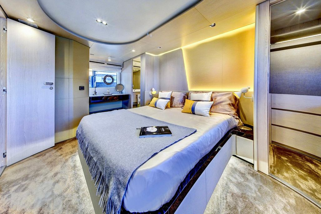 She is a luxurious and high-performance yacht that promises a truly exceptional boating experience and with very low hours of use. This sleek and stylish vessel impresses with its timeless beauty and innovative design, crafted to perfection by Azimut, pioneers in the world of luxury yachts. With a length of 78 feet, this flybridge masterpiece offers abundant space for entertainment and relaxation, accommodating a party of guests with ease. The open and airy layout features a spacious salon, a fully equipped galley, and four lavish staterooms, including a stunning full-beam master suite. The Azimut FLY 78 is propelled by triple Volvo-IPS 1350 engines, providing impressive speed and efficiency to reach your destination swiftly and smoothly, while offering unparalleled maneuverability and fuel economy. Equipped with the latest navigation and stabilization technologies, this yacht ensures a comfortable and steady ride, even in rough waters. Designed for outdoor enjoyment, the flybridge on the Azimut FLY 78 boasts a wet bar, and ample seating and sun loungers. The aft swim platform offers easy access to the waters, perfect for water sports enthusiasts. With its impeccable Italian craftsmanship, elegant interiors, and cutting-edge features, the Azimut FLY 78 is the epitome of luxury and exclusivity on the water.