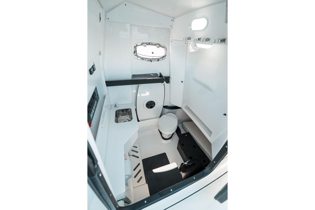 She was just fully detailed, compounded, and waxed, and is ready to go. This boat was never fished and the head was never used.