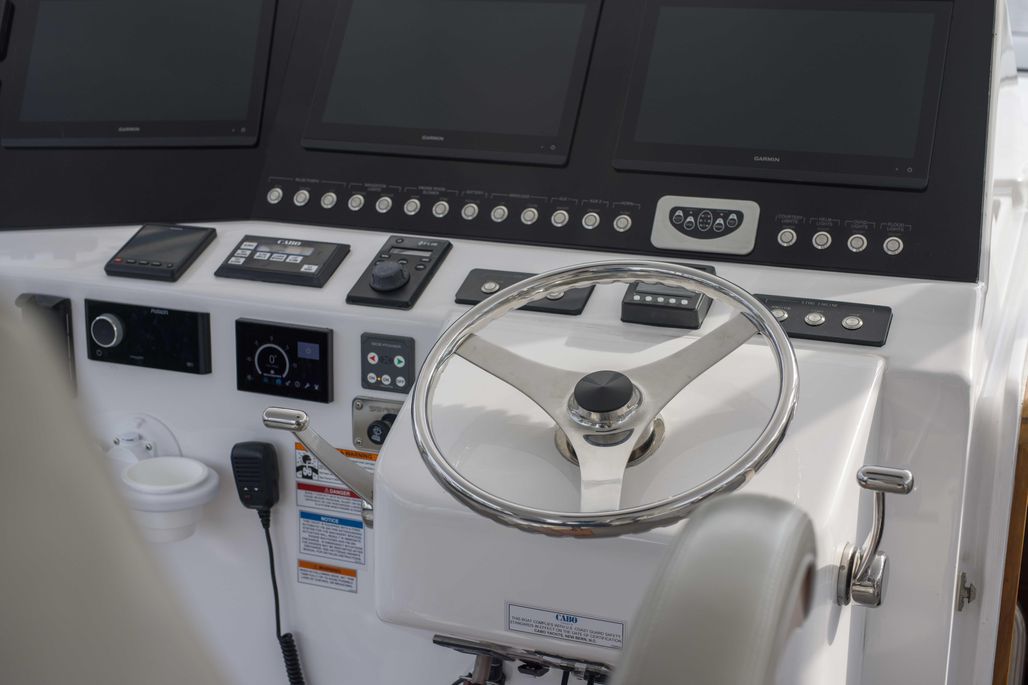 The 2020 41 CABO “Justice” is by far one nicest 41 Cabos on the market! She is powered by Cummins QSM11 670hp straight shaft engines giving her a cruise speed of 28 knots at only 50 gallons per hour. “Justice” has been outfitted with many options to keep friends and family comfortable while enjoying fishing or cruising offshore. Some of these options include a Seakeeper 6 for roll reduction, helm air conditioning, Starlink, watermaker, custom Canvas Designers sun lounge, and custom Beachcomber swim platform.