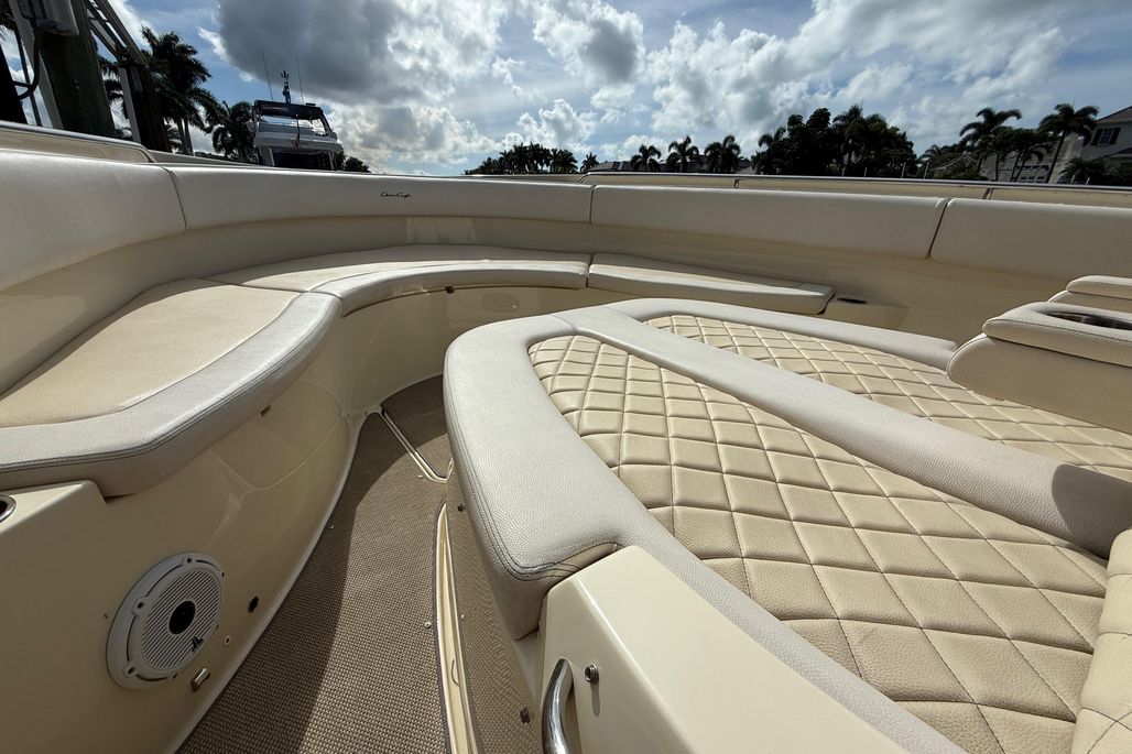 The flagship Catalina 34 is a center console unlike any other. Loaded with luxuries, its expansive bow seating, fold-away aft seating, and a spectacular berth for 2, make it equally at home as a cruiser or as a comfortable weekender. The wide beam accommodates three-across seating at the helm, and a well- equipped summer kitchen serves dinner for 14 guests. When you choose to getaway, it’s fully prepped for the perfect escape. This 34 Catalina has been well kept and she is ready for her new owner. Call today to find out more about her many features and options including: