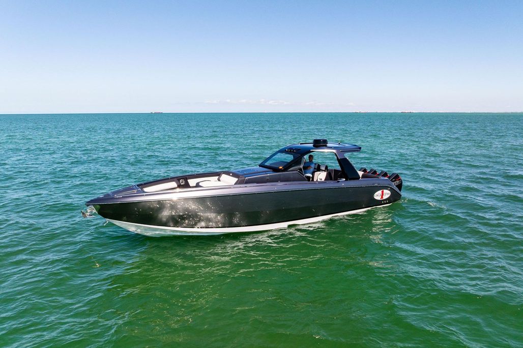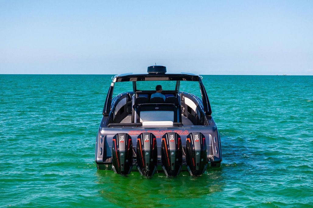 Experience Cigarette Racing’s signature blend of speed, luxury, and precision with this 2020 Cigarette 42’ Auroris. Powered by quad Mercury Racing 450Rs with just 365 hours (predominantly freshwater use), this vessel delivers thrilling performance and stunning craftsmanship. Always stored indoors, professionally transported, and freshly ceramic coated, great condition