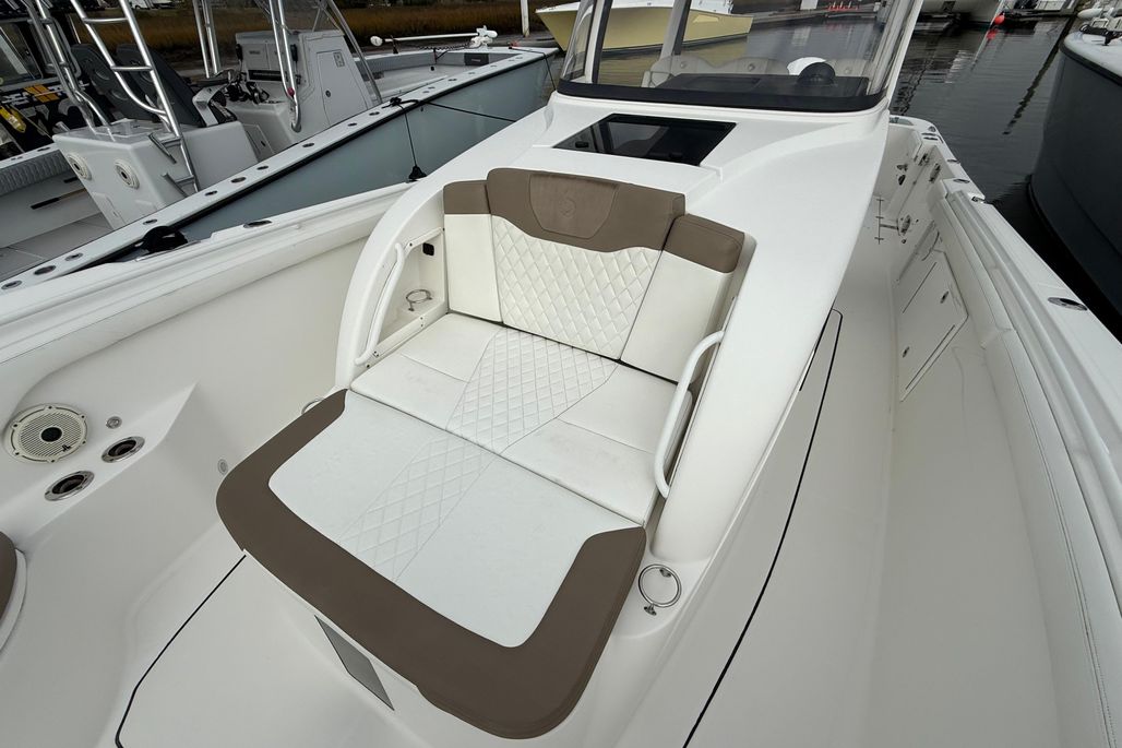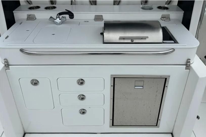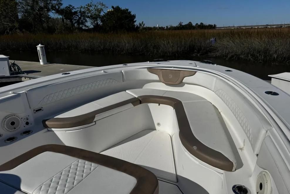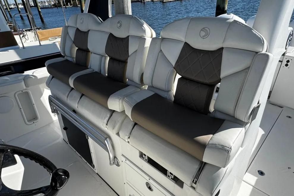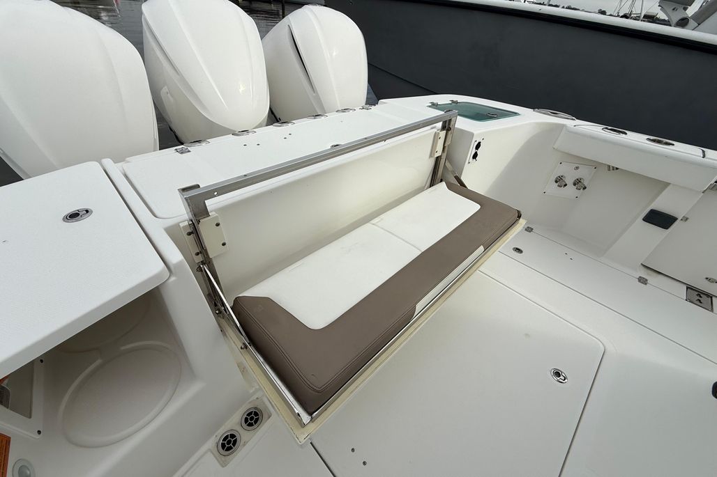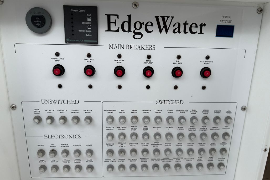 You will not find a more heavily loaded Edgewater 370 CC anywhere. Only 148 engine hours on reliable triple Yamaha 300 outboard power. Joystick steering and a bow thruster make maneuvering in marinas a breeze. A double stepped hull provides a fantastic ride while its stand up cabin offers abundant overnight accommodations. The 370CC is an offshore battlewagon which also offers family friendly cruising amenities like a BBQ grill, a diesel generator, cabin air conditioning and abundant forward and cockpit seating. Easy to see only 20 minutes from Charleston International Airport. Notable features include;