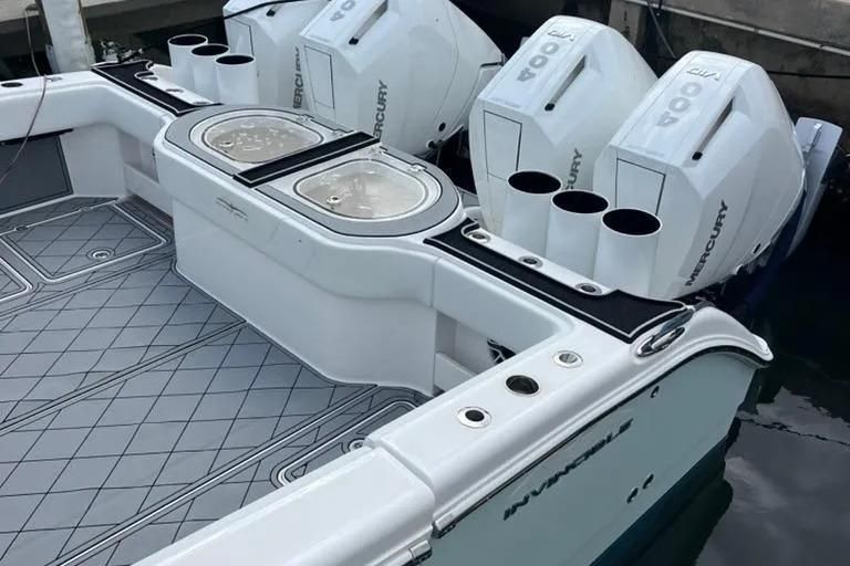 Built to run far and fast when conditions aren’t perfect, the Invincible 40 Catamaran was engineered to “tear through seas from any direction” and still carve clean, high-speed turns. With the optional 800-gallon tank, she stretches to an ~670-nautical-mile cruise range—think Miami–Exumas roundtrip without a fuel stop—while the wide 12-foot beam and twin-hull form deliver the soft, composed ride this model is known for.