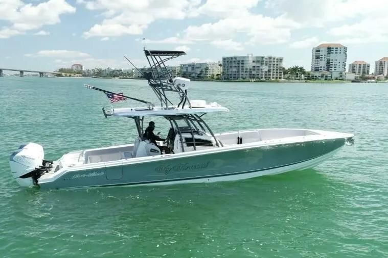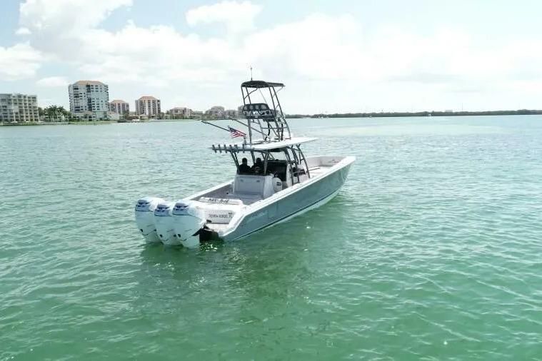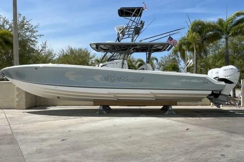 This 39 SuperFish by Nortech powered by three Mercury Racing 400 with few hours is the ultimate cruising / fishing machine and only 1 of 3 equipped with a custom tower complete with upper controls, Garmin GPS and VFH! Reach your favorite fishing destination cruising at 50 mph, or spend a day at the beach on this sexy machine. INCLUDES: 2 LIVE WELLS, FISH BOXES AND ROD HOLDERS.