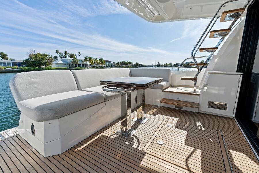 2020 Prestige 520 Flybridge "La Dolce Vita" For Sale! The 520 Fly is a top of the line model which incorporates many of the great features of the previous model, the 500 and some added innovations as well. The flybridge is XL and very comfy for relaxing. Also, this has a hardtop. Life on board is easy, very relaxing with a full service aft with excellent access to the galley.