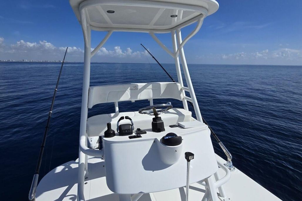 With insulated transom fish boxes and livewells on both sides, storing your catch is effortless. Enjoy the comfort of three helm chairs with footrests and advanced gyro stabilization for a smooth ride.