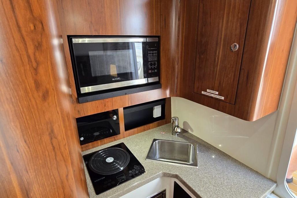 With an air-conditioned cabin, a small galley, and head below deck, the boat is perfect for weekend escapes.