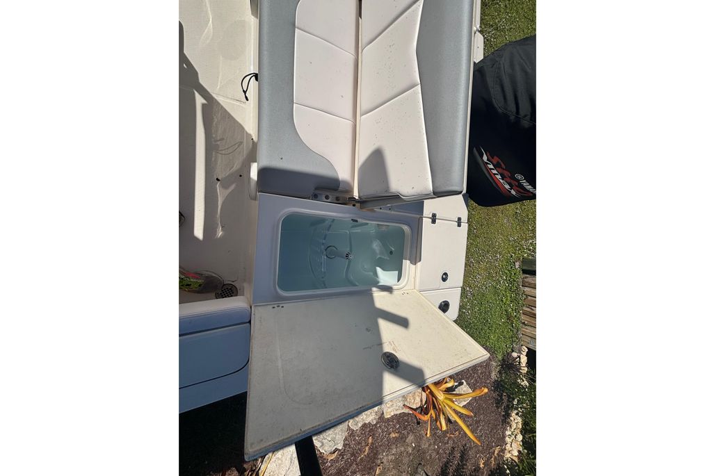 - Three oversized insulated livewells with blue LED lighting and two bait dividers