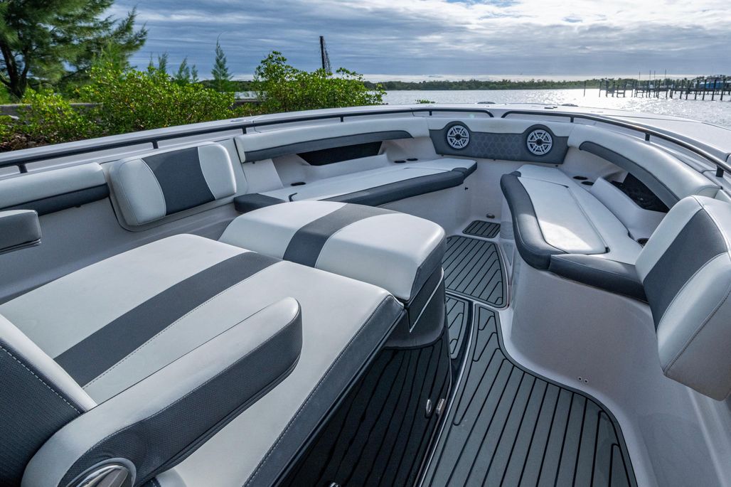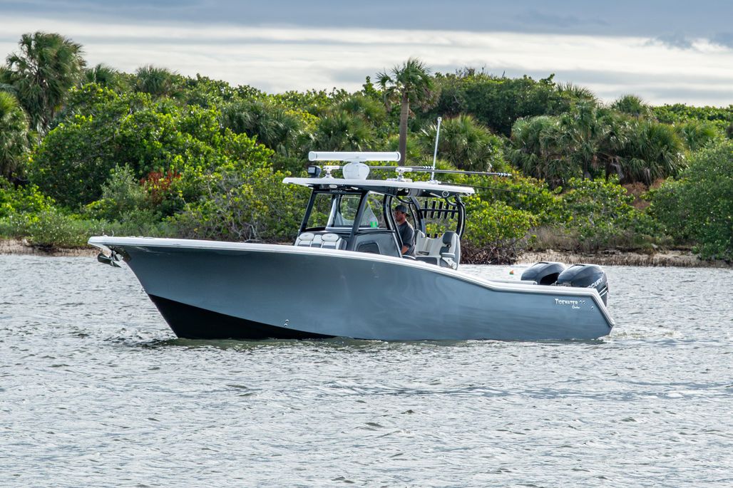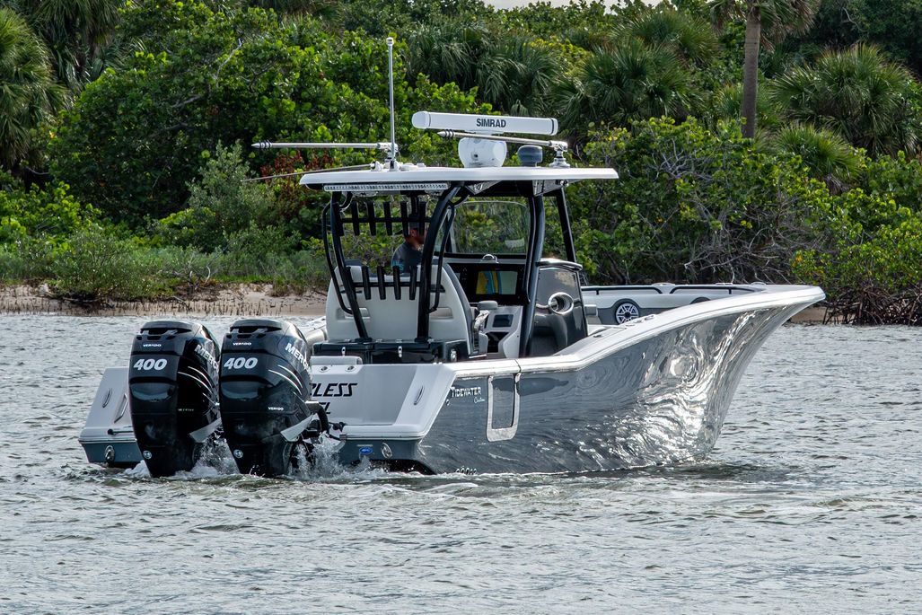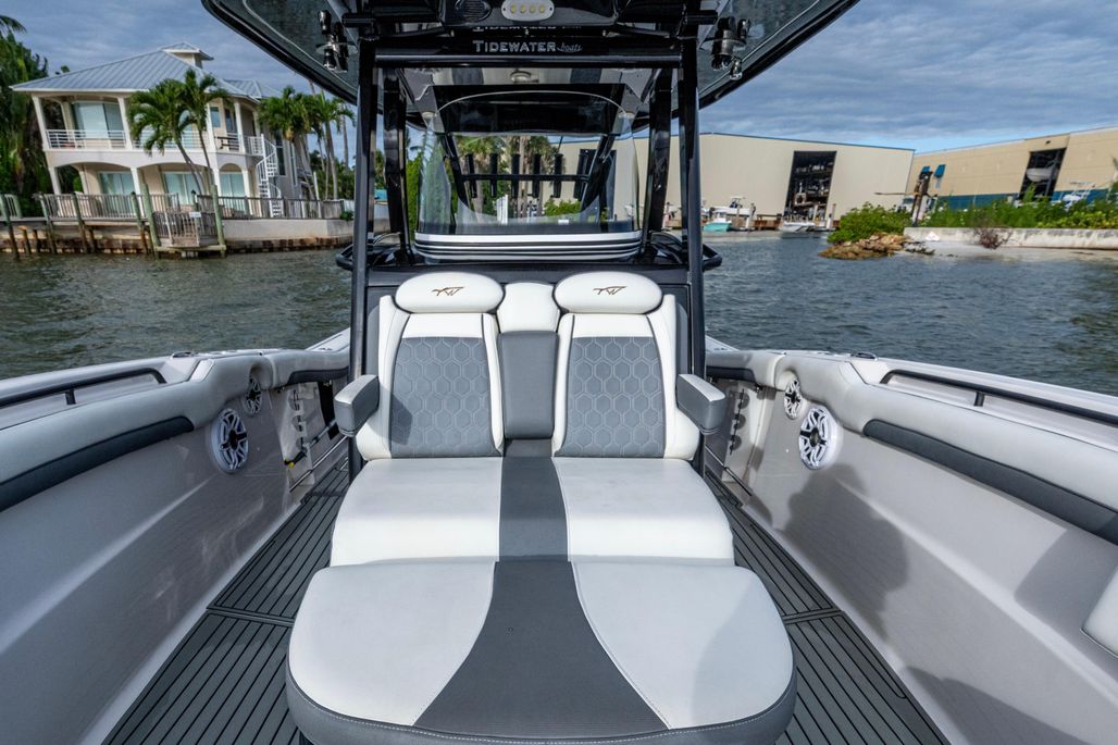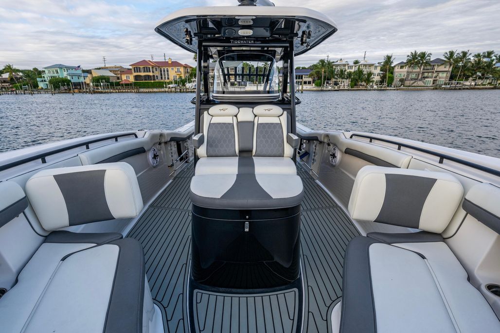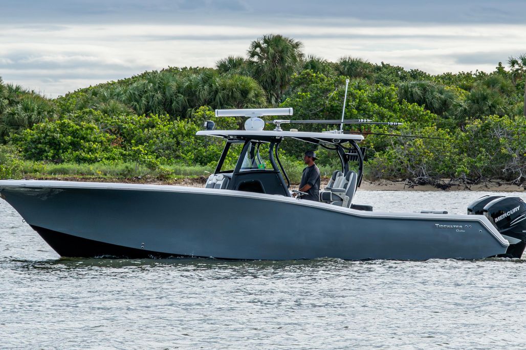 This 2020 32 Tidewater is lift kept, turnkey and maintained with an open check book. Powered by Twin 400hp Mercury Verado with only 278 hours. With Simard electronics, JL audio, joystick, gemlux outriggers, Xsonic transducer, this 32 Tidewater is as close to new as they come and fully loaded! Tidewater is filled with luxury from the yacht style helm station, wrap around bow seating with flip-out backrests, walk-in console and much more.