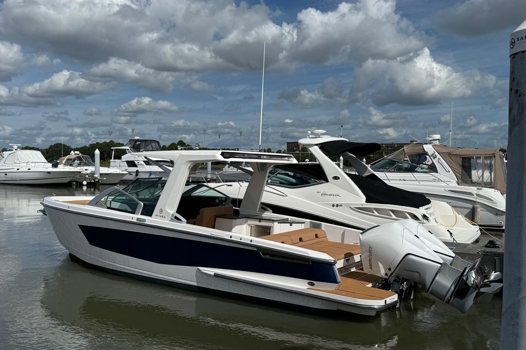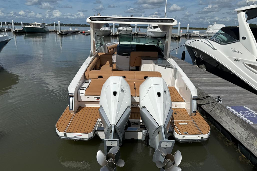 Don't miss this extremely clean and professionally maintained Aviara 32 Outboard. The Aviara 32 Outboard is loaded with innovative features including abundant seating, comfortable SeaDek flooring, a 12" Garmin GPS/Chartplotter, large head and a fiberglass hardtop. Power is provided by reliable twin Mercury 300HP Outboards covered under TRANSFERRABLE Mercury Platinum Product Protection until August 2026. Service records available with accepted offer. Vessel is easy to see, located only twenty minutes from the Charleston International Airport. Additional features include;