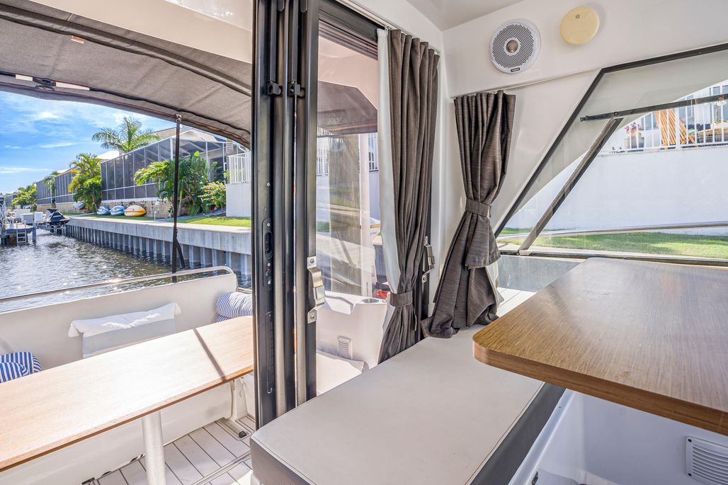 The cockpit features versatile seating that folds away to maximize deck space for fishing or lounging. Wide side decks and secure rails make moving around safe and easy, while the bow thruster simplifies docking. Whether you’re planning sunset cruises in Tampa Bay, weekend getaways to Sarasota, or fishing trips off Clearwater, this Antares 9 is the perfect platform.