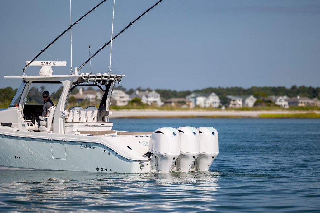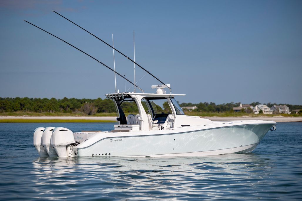 A rare combination of luxury and superior performance in a power boat. EdgeWater is proud to introduce the exciting new 370CC. Built using Single-Piece Infusion, or SPI, enabled us to create a lighter, more efficient, more environmentally sensitive power boat. Interior cabin loaded with everything one would need for a couple’s getaway. Designed for fishing, entertaining, and cruising.