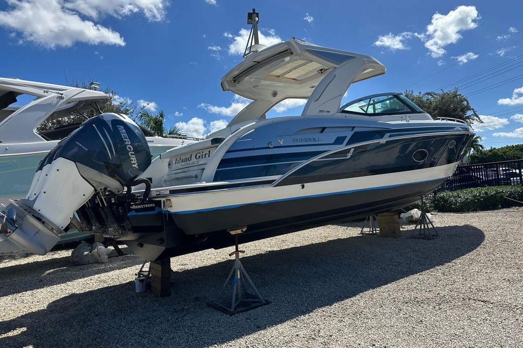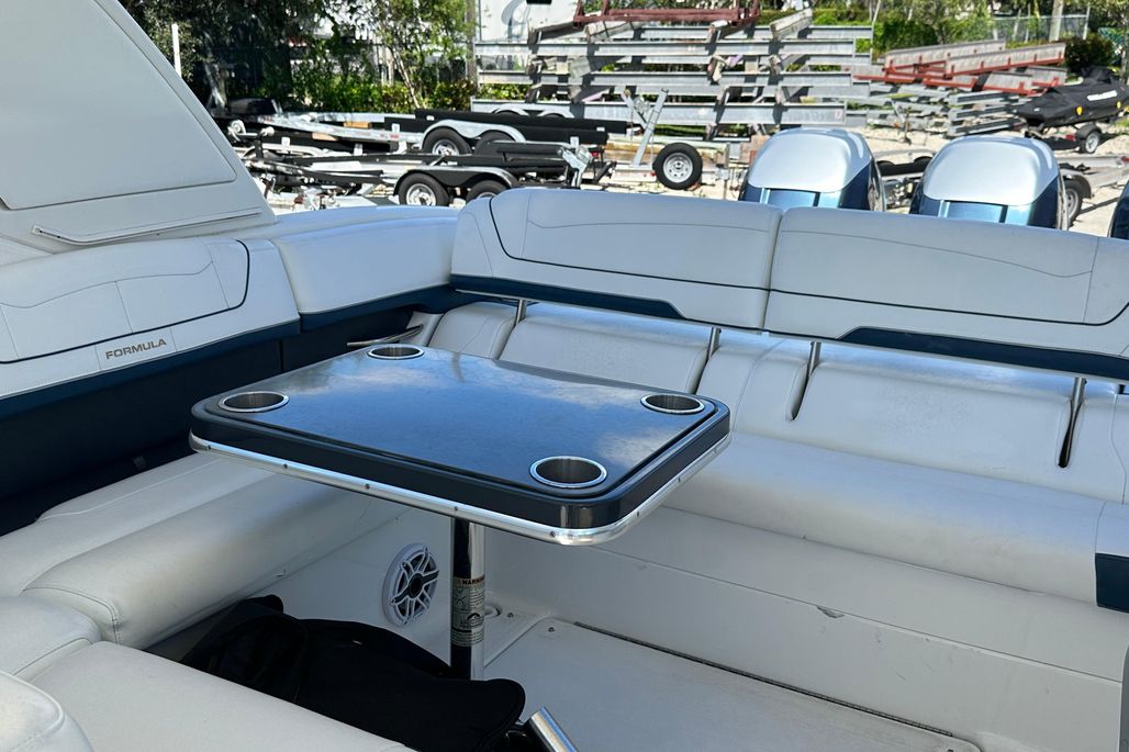 Introducing the stunning 2021 Formula 350 Crossover Bowrider OB, a remarkable blend of luxury and performance. With an impressive overall length of nearly 38 feet, this bowrider features a sleek fiberglass hull designed in a deep Vee shape, ensuring a smooth and stable ride on the water. Powered by three robust Mercury Verado 350 outboard engines, delivering a total of 1,050 horsepower, this vessel promises exhilarating speed and agility. The advanced joystick control enhances maneuverability, making it a breeze to navigate in any conditions. Inside, the boat offers a well-appointed cabin and head, providing comfort for day trips or weekend getaways. The thoughtful design and spacious layout make it perfect for entertaining guests or enjoying family outings. Experience the thrill of the open water with the Formula 350 Crossover Bowrider, where style meets performance in every detail.