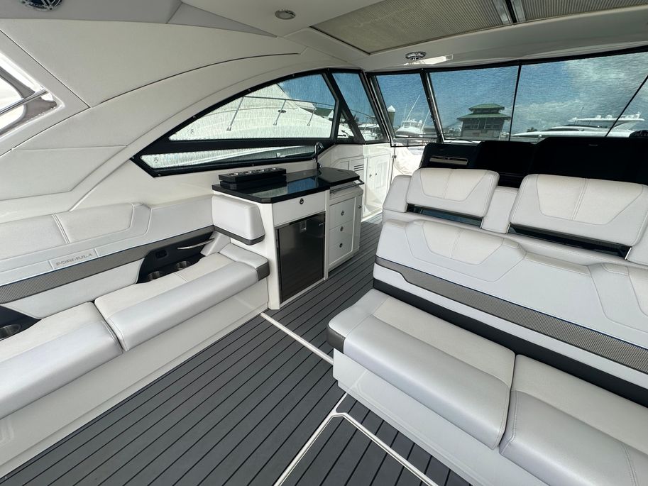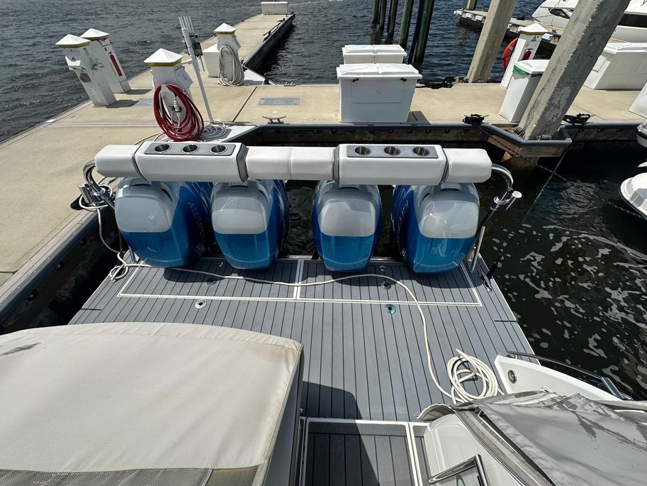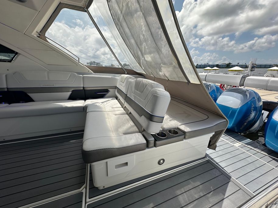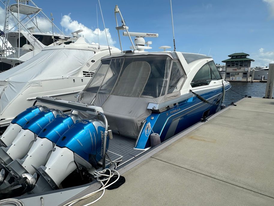Introducing the stunning 2021 Formula 400 SSC, a remarkable sports cruiser that embodies luxury and performance. With an overall length of 40 feet, this vessel features a sleek fiberglass hull designed in a deep vee shape, ensuring exceptional stability and agility on the water. Powered by four robust Mercury Verado 350 outboard engines, each delivering 350 horsepower, this boat promises exhilarating speed and responsiveness. The stainless steel 4-blade propellers enhance performance, making every journey a thrilling experience. Equipped with modern amenities, including joystick control for effortless maneuvering and an electric windlass for convenience, the Formula 400 SSC is designed for both ease and enjoyment. This used model, with only 473 hours of engine use, is ready to provide unforgettable adventures on the water. Experience the perfect blend of style, power, and comfort with this exceptional sports cruiser.