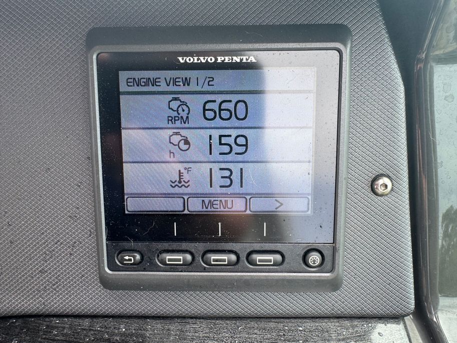 The performance of the twin Volvo Penta 300's is outstanding, providing an ideal balance of power and efficiency. With just 147 hours of use, these engines are barely broken in, ensuring years of reliable performance. This vessel has been kept in pristine condition and shows like a new boat. It has been stored indoors at Haulover Marine Center, and the owner has a strict routine of rinsing the boat and flushing the engines after every single use—a true testament to the exceptional care this vessel has received.