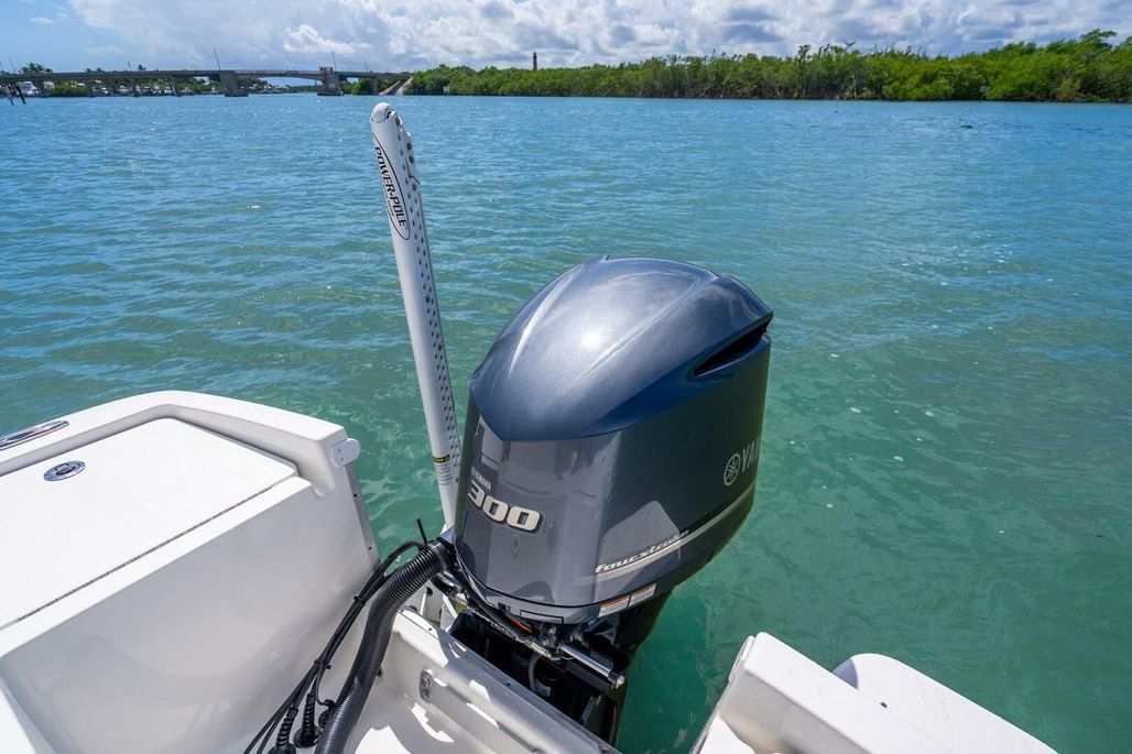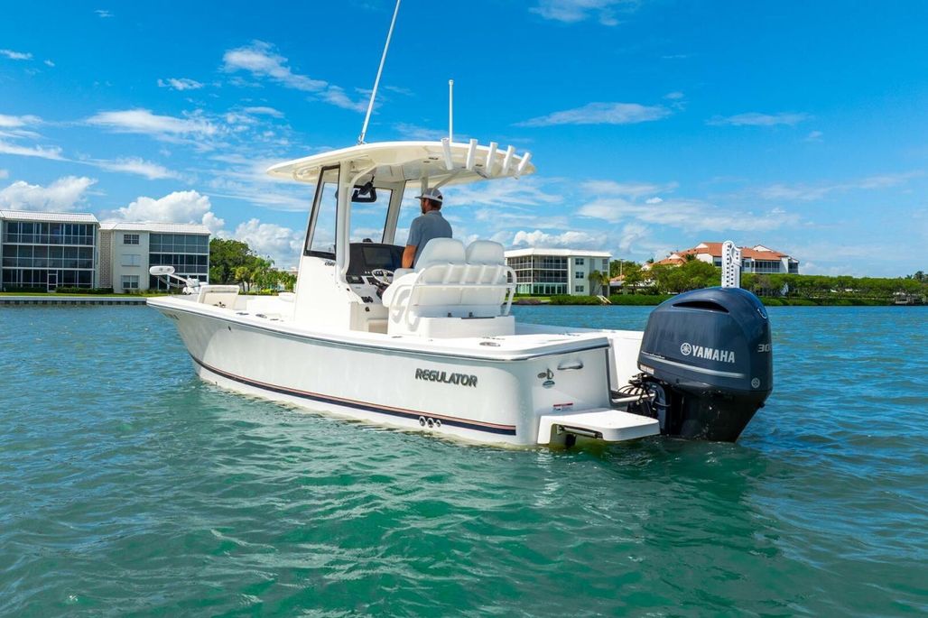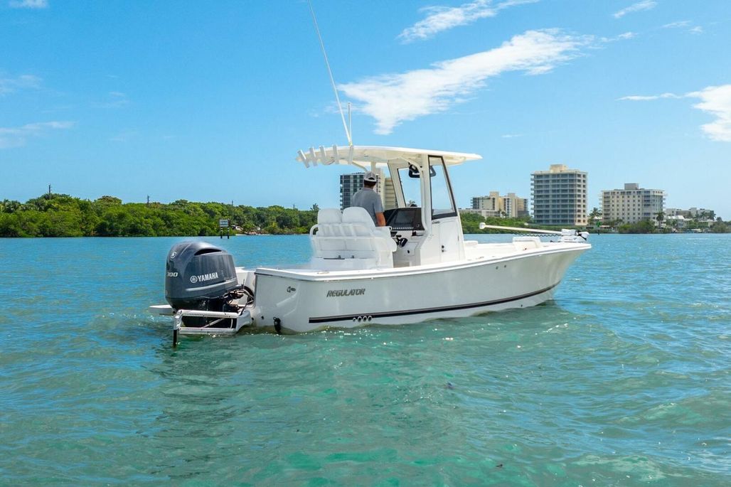 This 2021 Regulator 26XO is a versatile center console designed for both inshore and near-offshore fishing. Powered by a single Yamaha 300-hp four-stroke outboard with low hours, it offers a top speed around 38 knots and efficient cruising in the mid-30s. The 26XO features a deep-V hull with a shallow draft, making it capable of handling choppy offshore waters while still accessing shallow bays and flats. Key highlights include multiple livewells and fish boxes, a power pole, integrated Garmin electronics, and comfortable seating for family cruising or fishing trips. It’s a well-balanced boat for anglers who want offshore capability with inshore versatility.