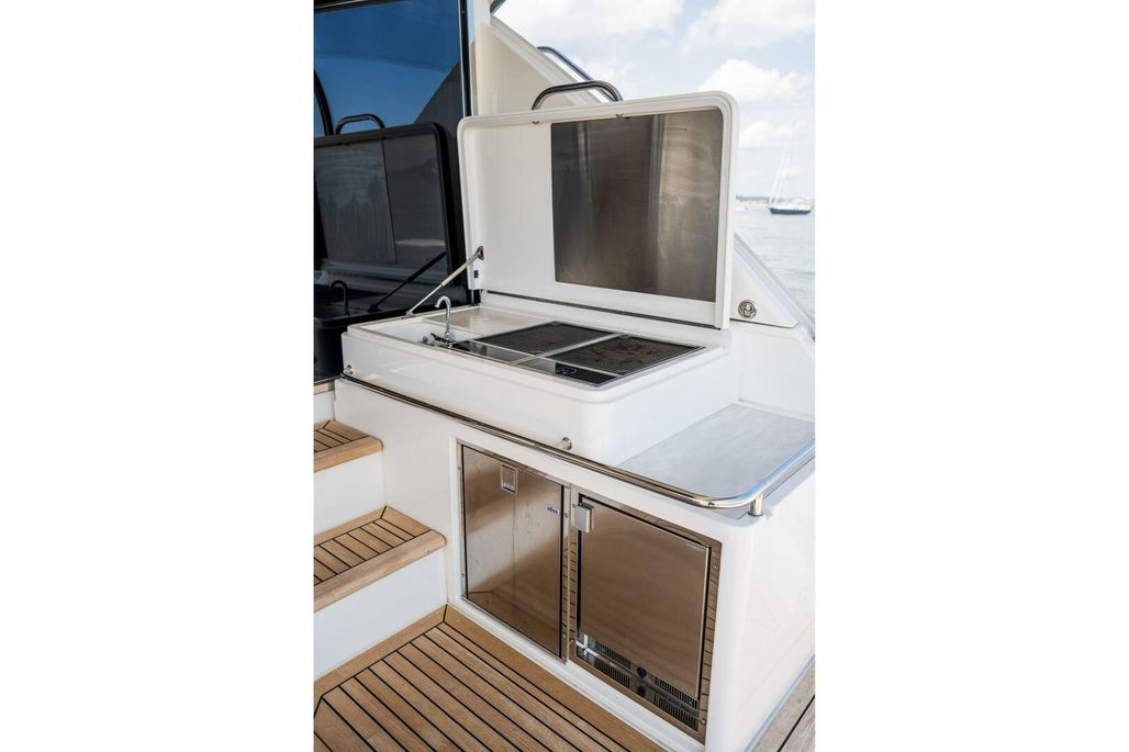 - Additional 2 x helm chairs and drink holders to starboard side, 3 seater lounge aft (in lieu of L shaped lounge)