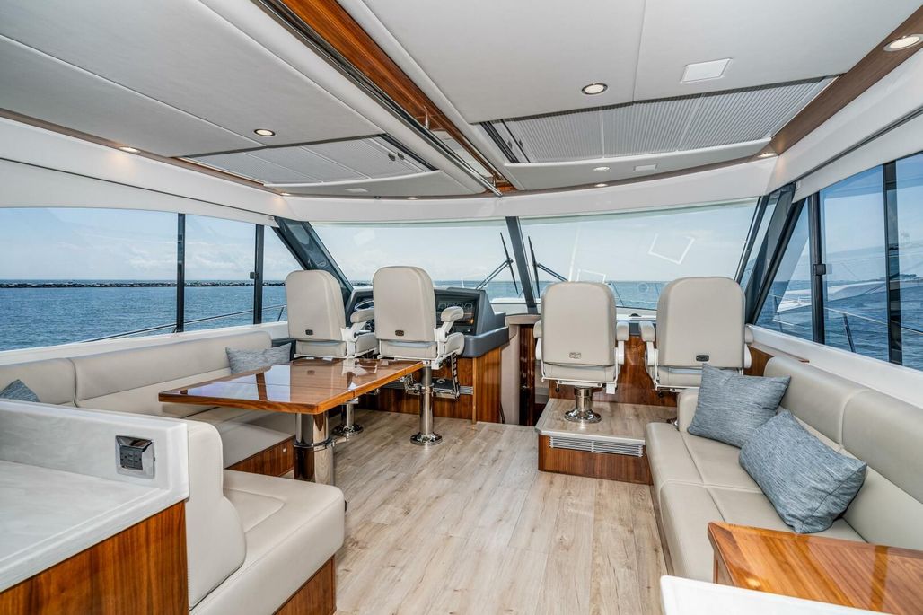 A rare find, the Riviera 575 SUV is a true hybrid – a bluewater boat that is as comfortable fishing or diving as it is cruising with family. True to name, the SUV can do it all, thanks in part to its large open cockpit, which can entertain a crowd, gear up divers, or fish a tournament. An outdoor mezzanine area with wet bar, aft galley, and three developed staterooms make the boat perfect for cruising as well, with plenty of bulk storage in the cockpit for paddleboards, bikes, etc. A phenomenally soft riding boat with extensive range, the 575 can go to more places, and in worse conditions, than most any other 60' boat.