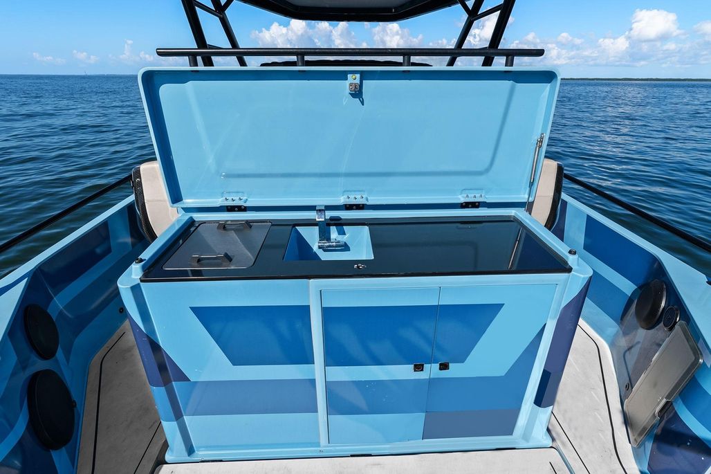 This 2022 Brabus Shadow 500 TT by Axopar represents a rare opportunity to own one of the most capable 28-foot performance boats on the market. With just 130 hours of use, this vessel is in excellent condition and has clearly been maintained with care. Powered by twin Mercury Pro XS 250s, the 500 TT delivers a smooth yet commanding ride, offering the kind of acceleration and responsiveness that serious boaters appreciate.