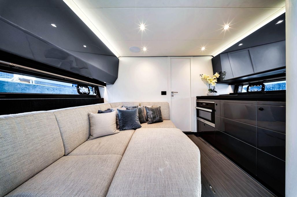 The Verve 47 is built for those who want immersion and pace in equal measure. Styled as a weekender cruiser, she blends a bold, sea-going profile with a cockpit and interior conceived for quick getaways, day trips, and overnight loops without compromise.