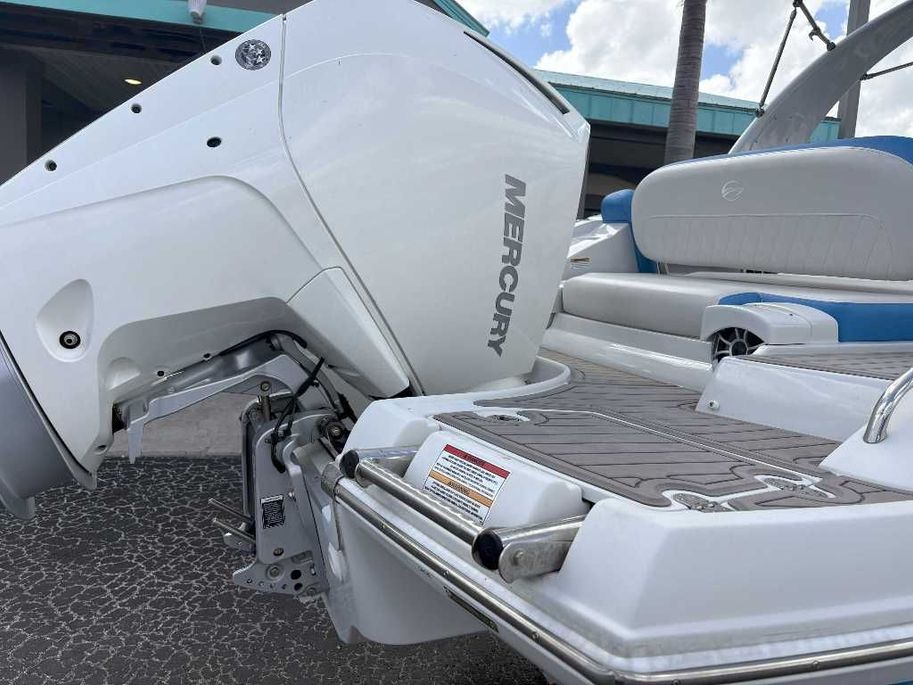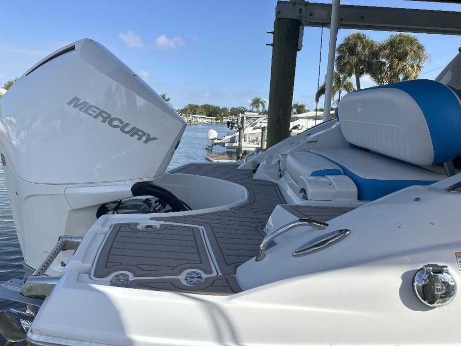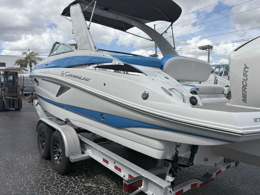 Introducing the stunning 2022 Crownline 270 XSS, a remarkable bowrider that combines style and performance. With an overall length of 27 feet, this vessel boasts a sleek fiberglass hull designed in a deep Vee shape, ensuring smooth navigation and stability on the water. Powered by a robust Mercury 4.6L 300 Fourstroke engine, it delivers an impressive 300 horsepower, achieving cruising speeds of 40 mph and a maximum hull speed of 55 mph. This boat is equipped for adventure, featuring an electric windlass for effortless anchoring. With a generous seating capacity for up to 12 people, it’s perfect for entertaining friends and family. The accommodation includes two heads, enhancing comfort during your outings. With a range of 200 miles, the Crownline 270 XSS is ready to take you on unforgettable journeys. Experience the thrill of the open water with this exceptional vessel, designed for those who appreciate quality and performance. Call the professionals at Black label marine Group today and let us make your boating dreams a reality. We also offer great financing to make your boat buying process smooth and easy.