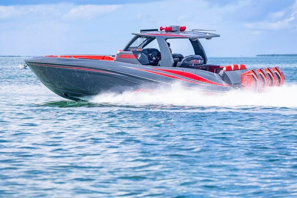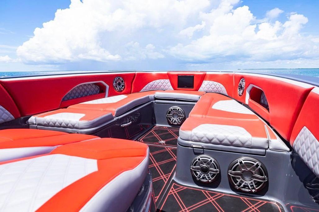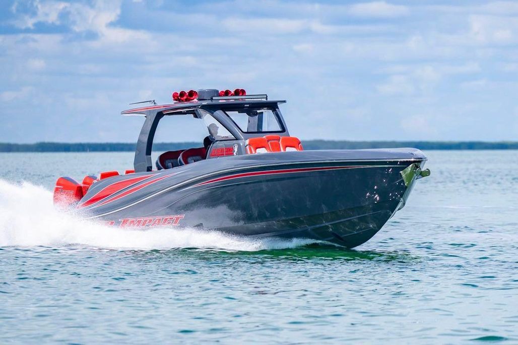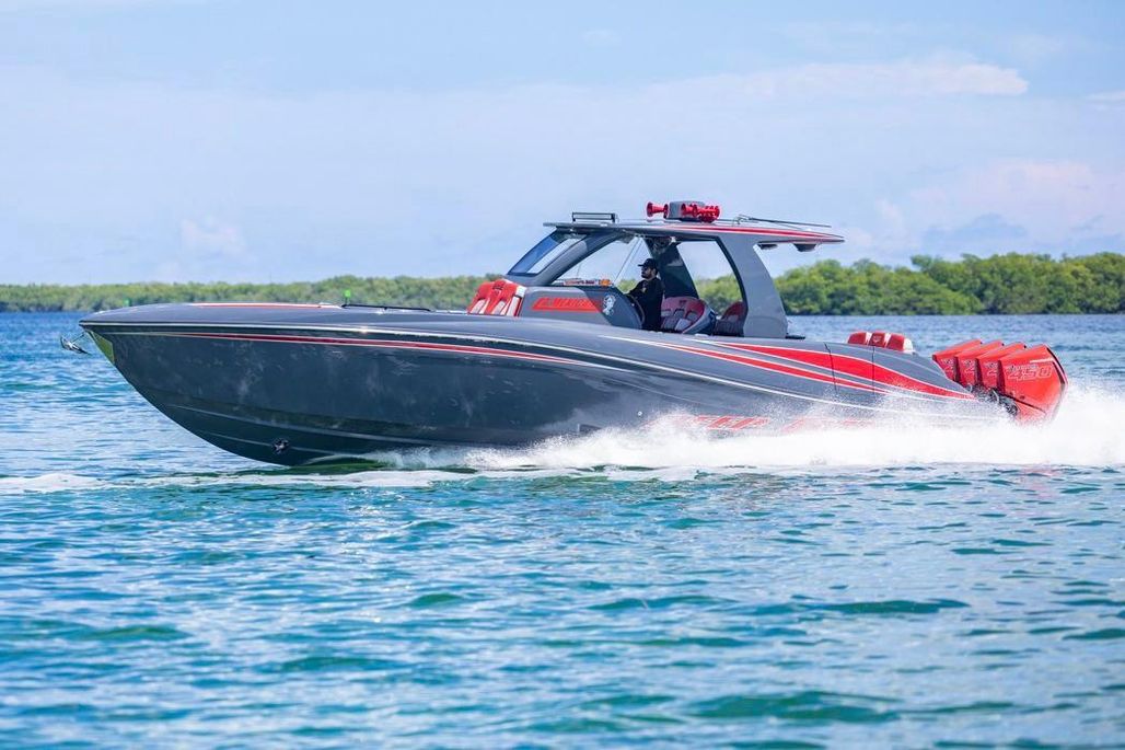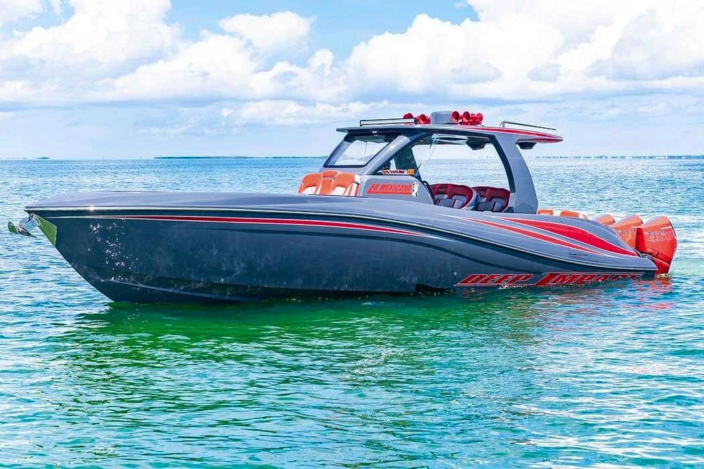 2022 Deep Impact 399 Sport powered by quad Mercury Racing 450R (420 hrs) with warranty until April 2027. This boat is well optioned including a SEAKEEPER 3 and upgraded JL Audio Sound System.